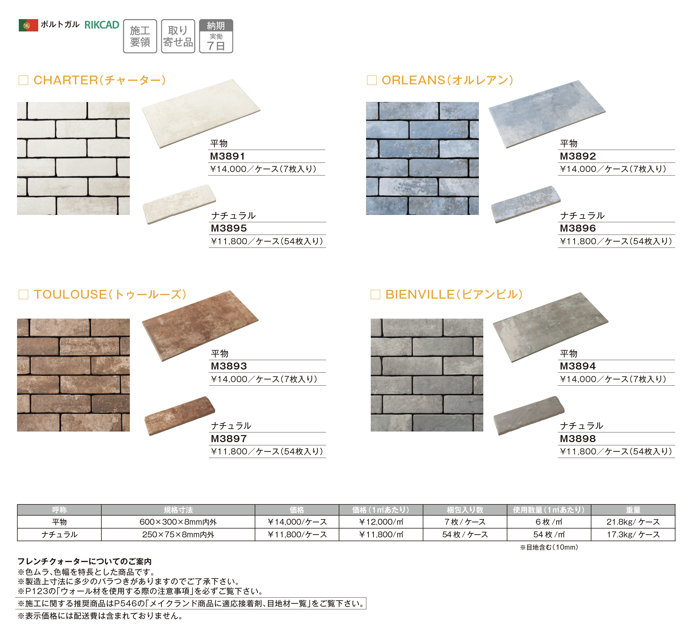 | カラー | CHARTER(チャーター) ORLEANS(オルレアン) TOULOUSE(トゥールーズ) BIENVILLE(ビアンビル) |
