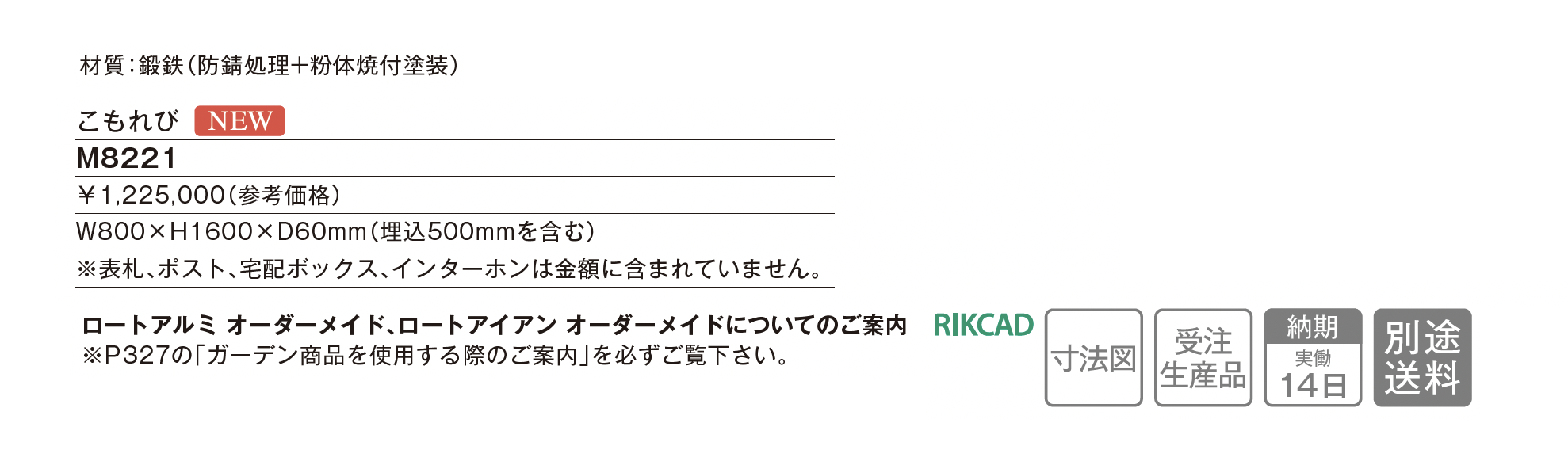 | 新旧品 | ロートアイアンオーダーメイド【2025年版】(makeland All Items Catalog 2025-2026)ロートアイアンオーダーメイド【2024年版】(makeland All Items Catalog 2024-2025) |
