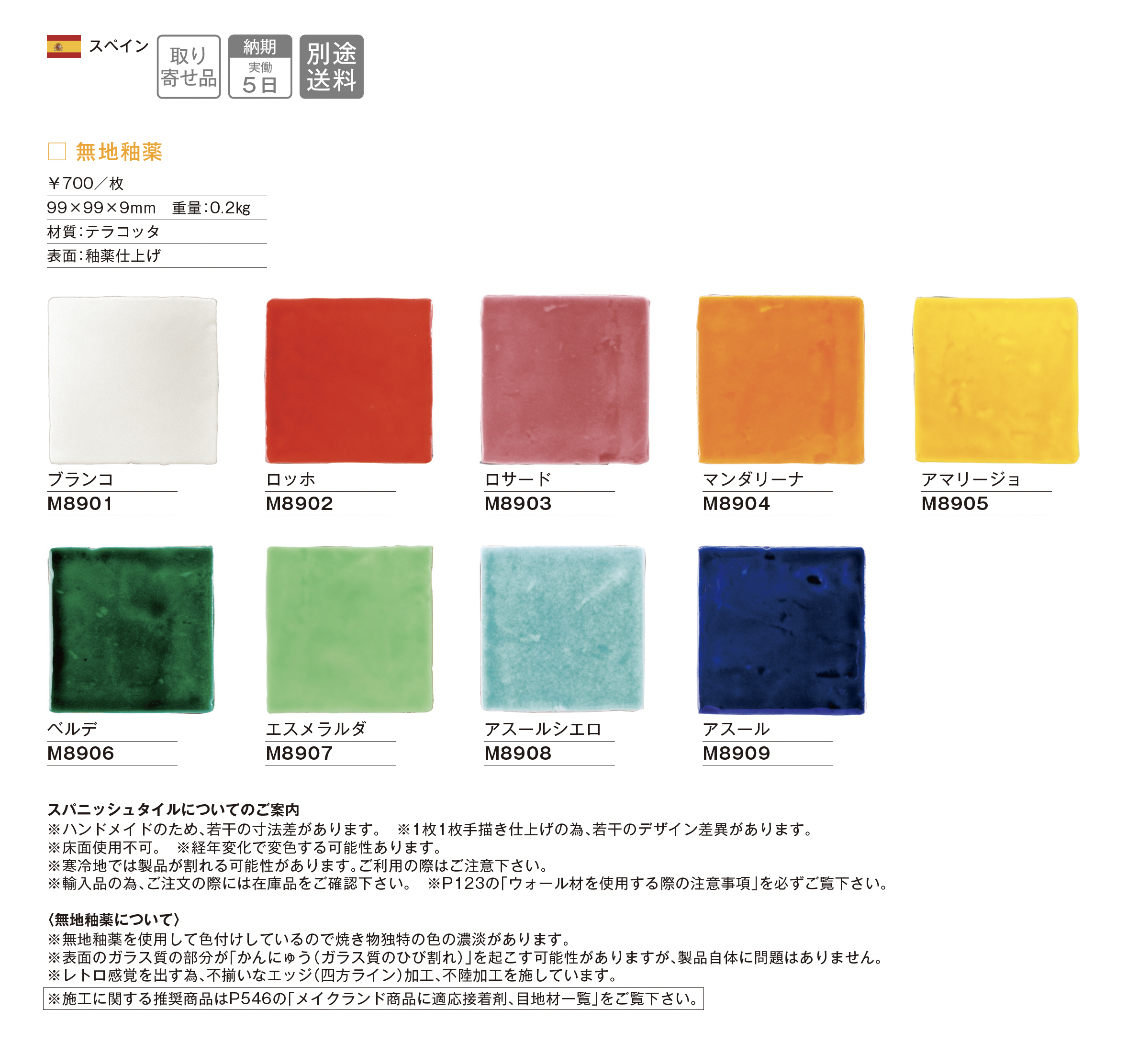 | 新旧品 | スパニッシュタイル 無地釉薬【2025年版】(makeland All Items Catalog 2025-2026)スパニッシュタイル 無地釉薬【2024年版】(makeland All Items Catalog 2024-2025) |
