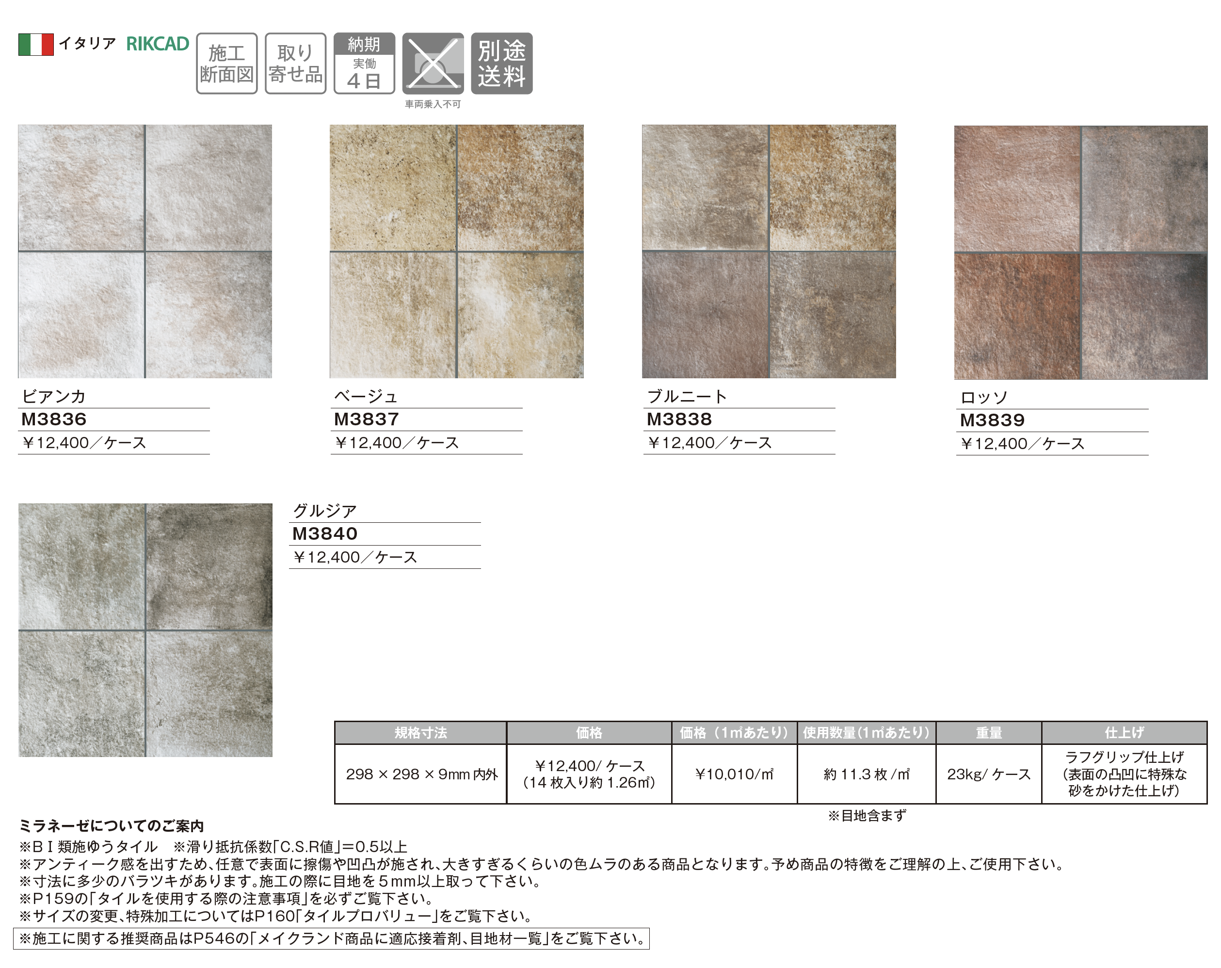 | カラー | ビアンカ ベージュ ブルニート ロッソ グルジア |