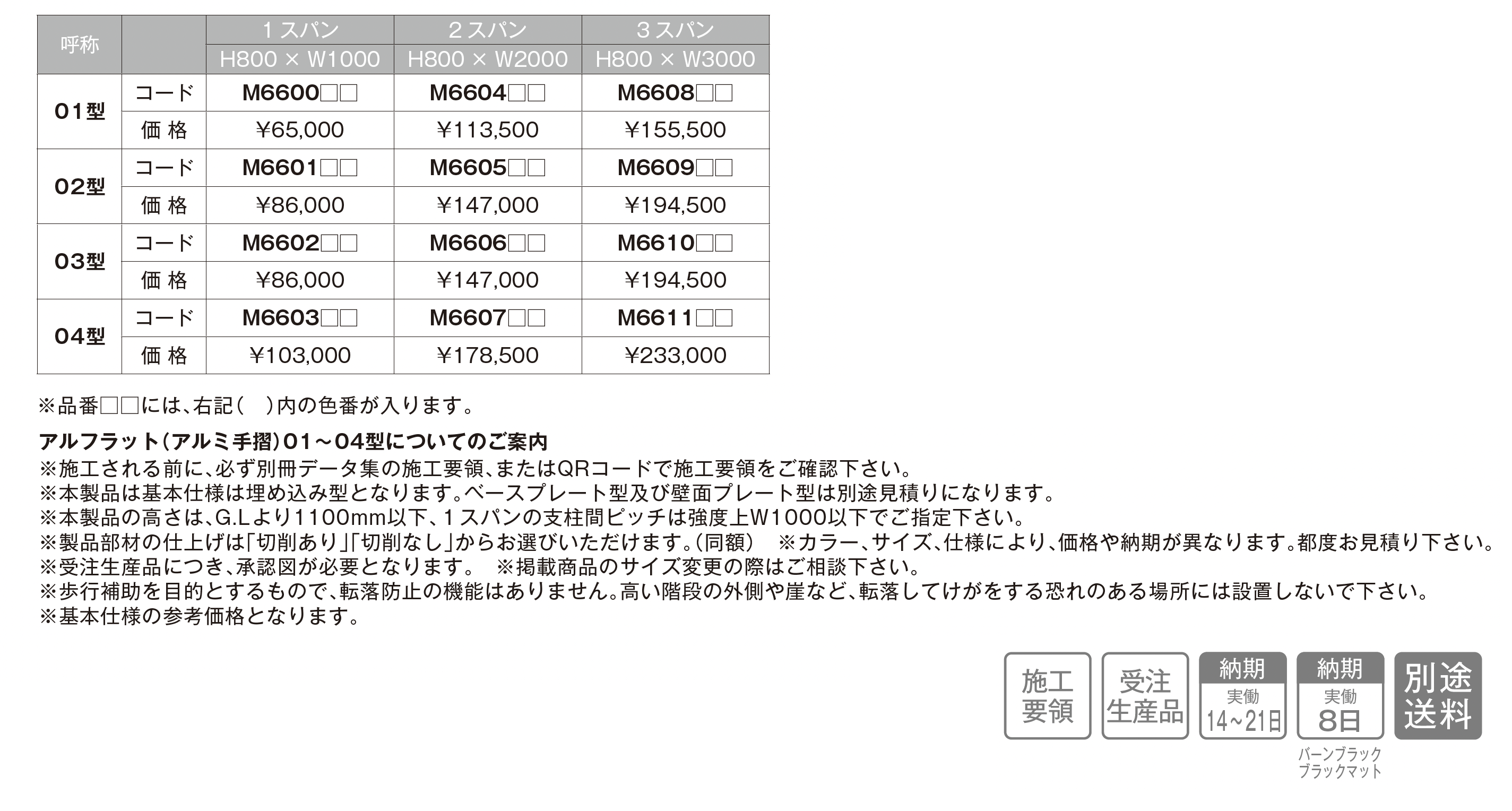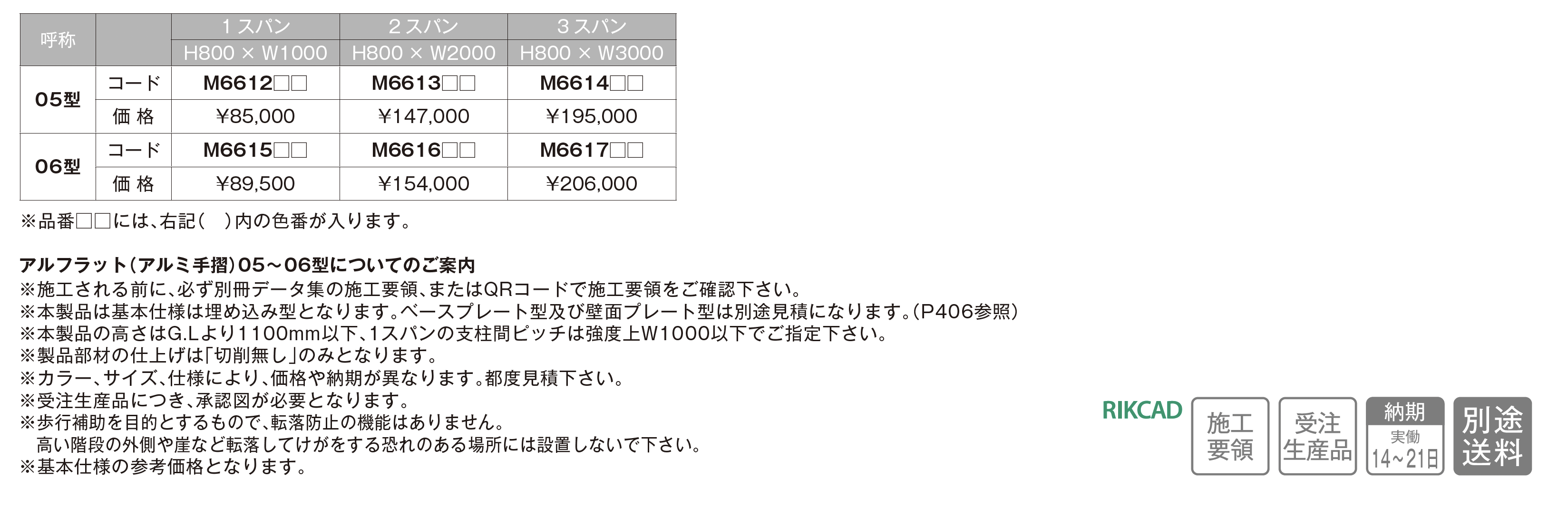 | 新旧品 | アルフラット(アルミ手摺)【2025年版】(makeland All Items Catalog 2025-2026)アルフラット(アルミ手摺)【2024年版】(makeland All Items Catalog 2024-2025) |