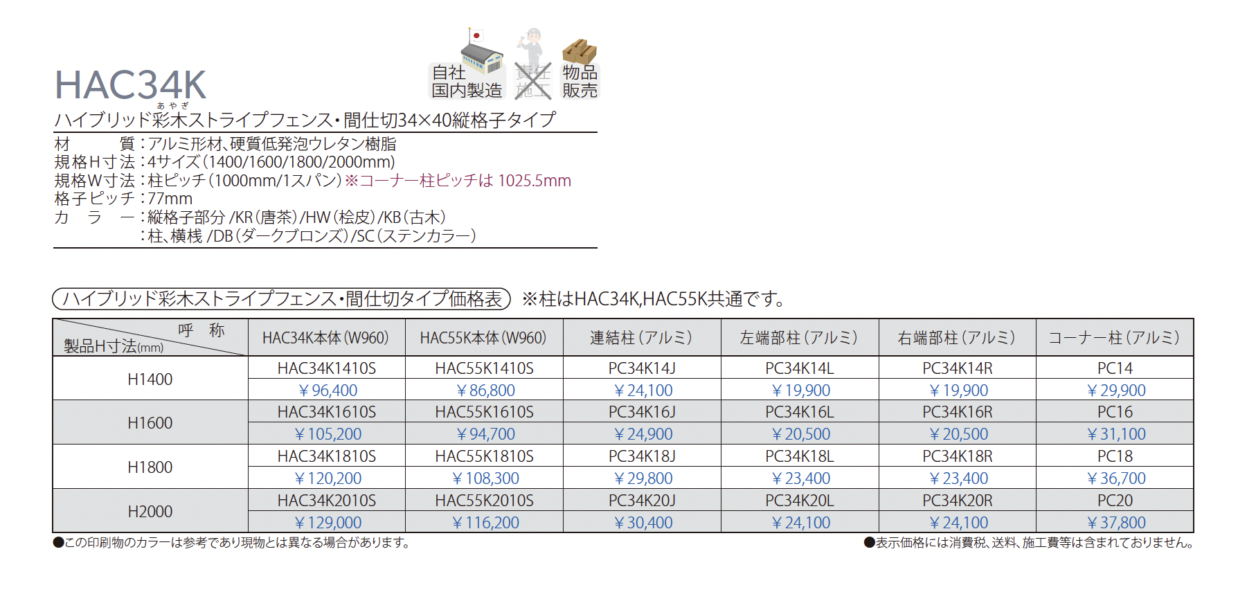 ハイブリッド彩木ストライプフェンス・間仕切34×40縦格子タイプ【2024年版】(彩木ウォール&エクステリアカタログ【2024.4.14発刊】)
