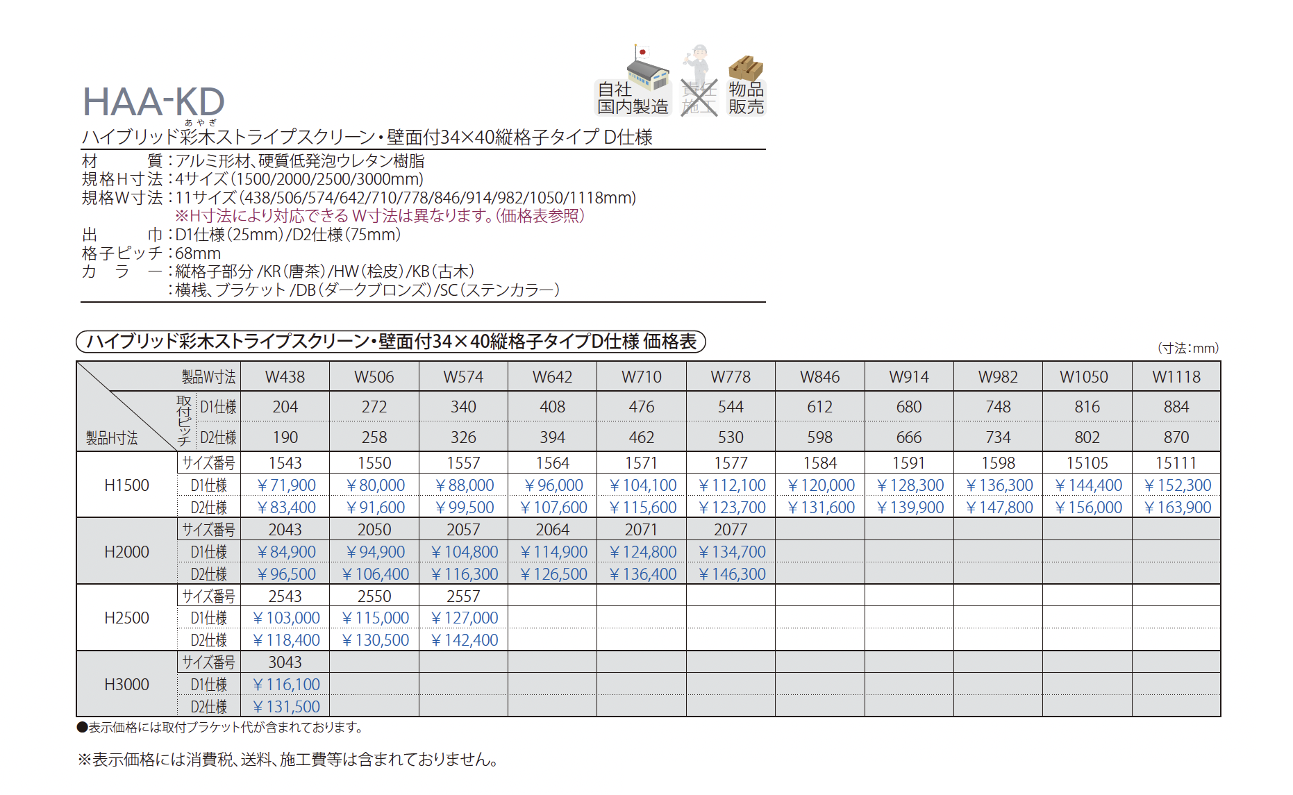 ハイブリッド彩木ストライプスクリーン・壁面付34×40縦格子タイプ D仕様 HAA-KD