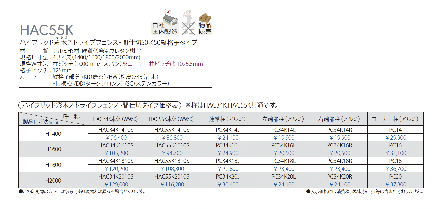 ハイブリッド彩木ストライプフェンス・間仕切50×50縦格子タイプ HAC55K