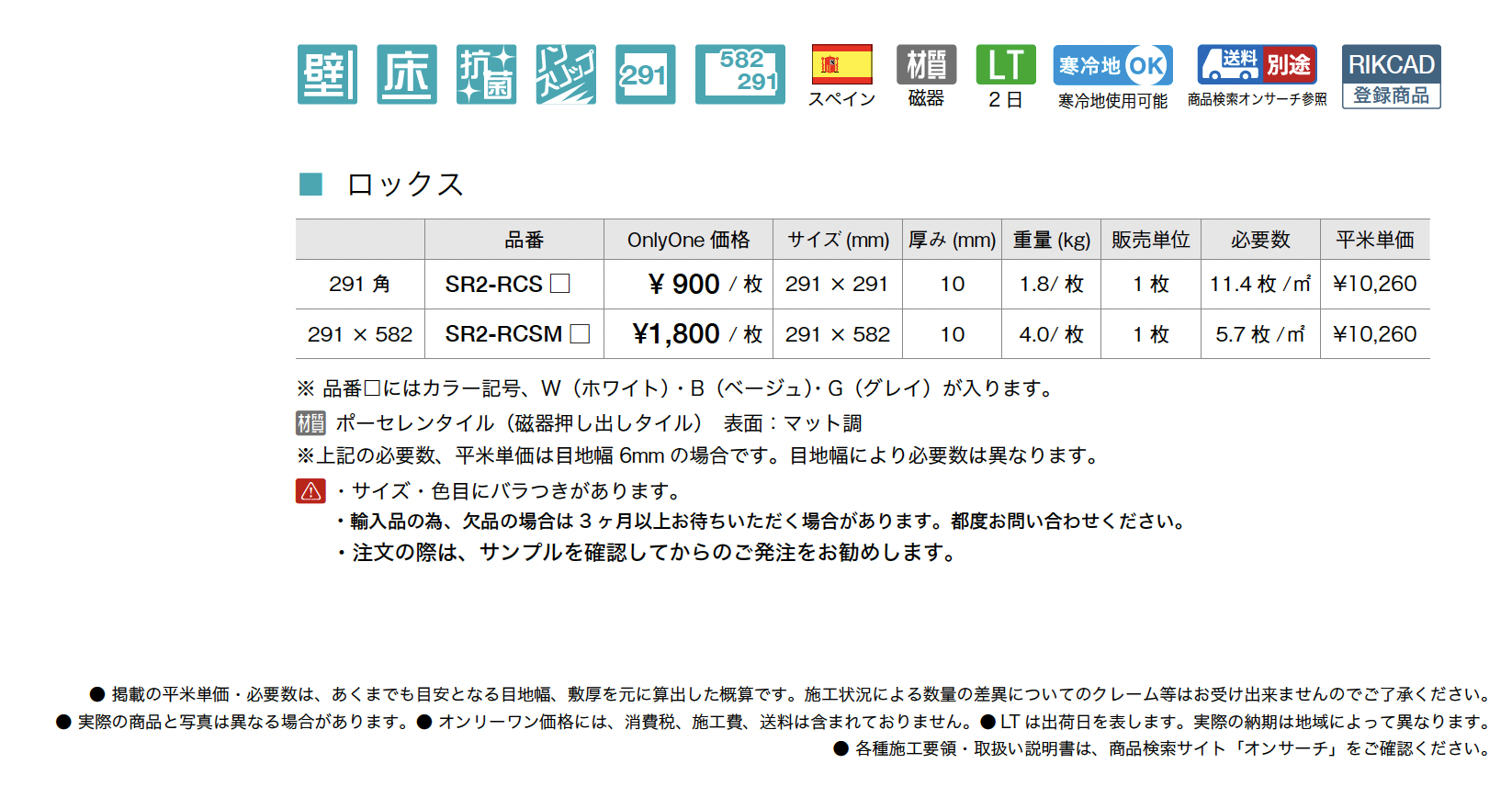 | 材質 | 磁器 ポーセレンタイル(磁器押し出しタイル) マット調 |