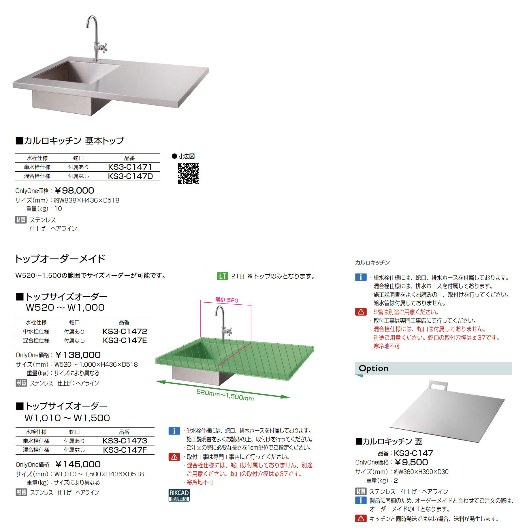 | 新旧品 | カルロキッチン【2025年版】(ガーデン&リビング 2025/G18) |