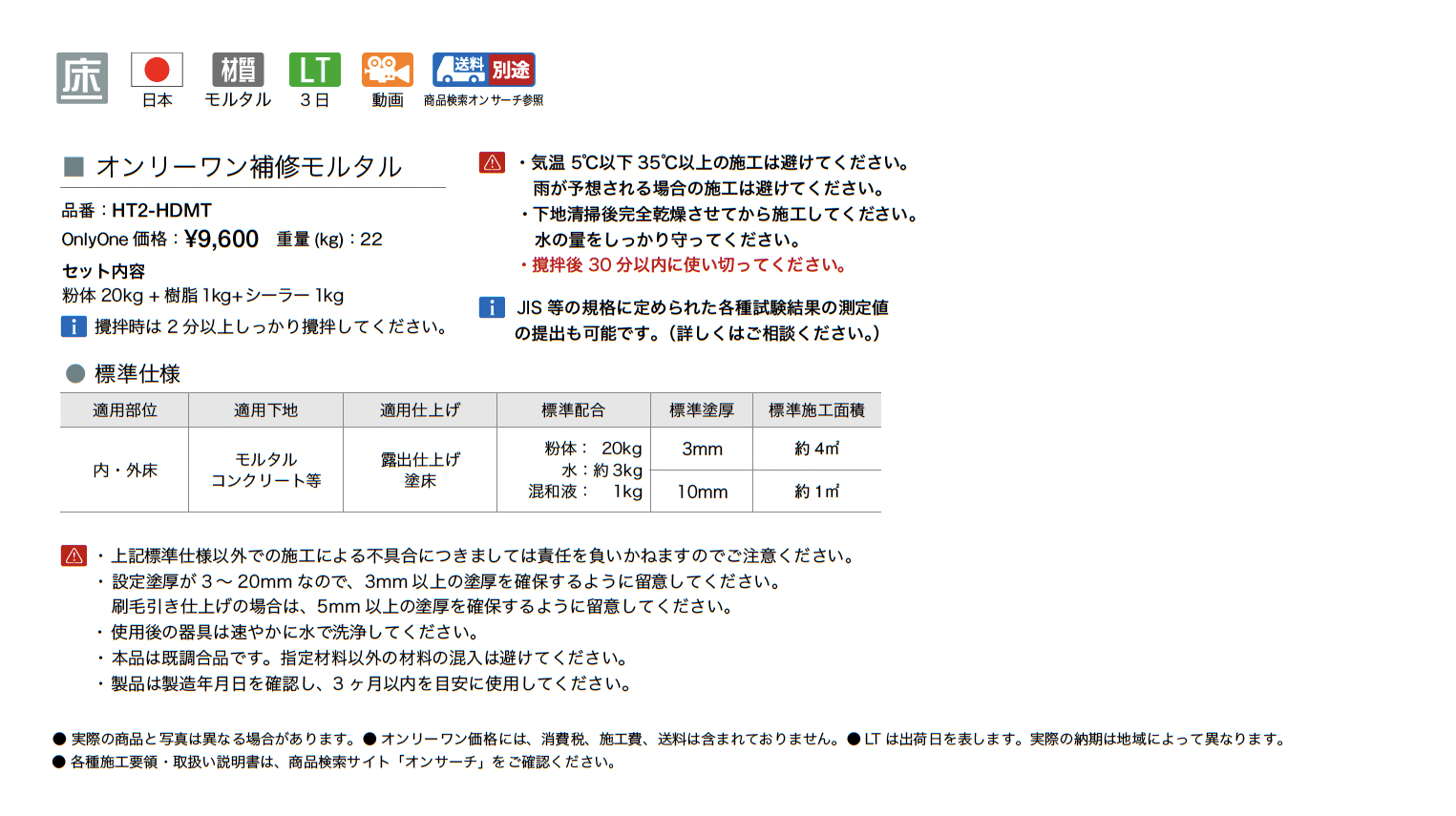 オンリーワン補修モルタル【2025年版】(マテリアル 2025/M19)