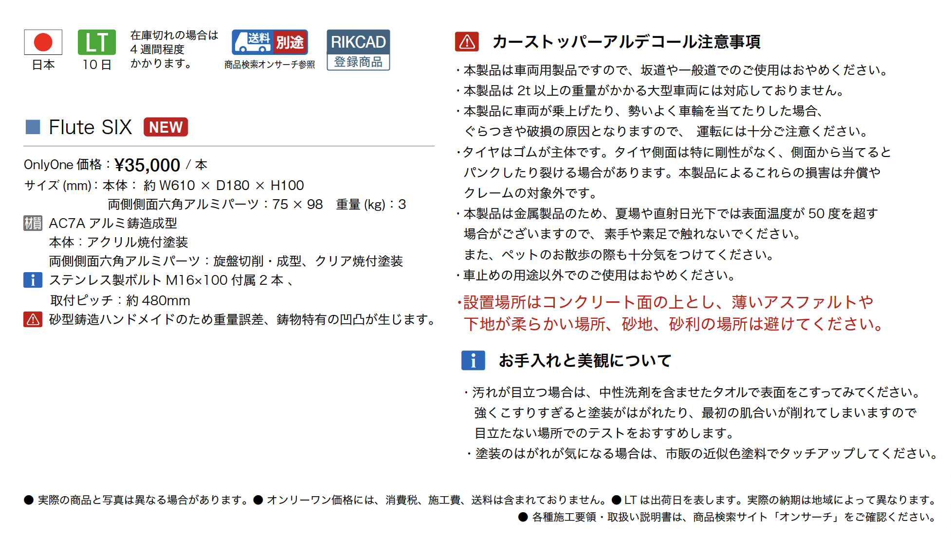 | 材質 | AC7A アルミ鋳造成形 アクリル焼付塗装 クリア焼付塗装 |