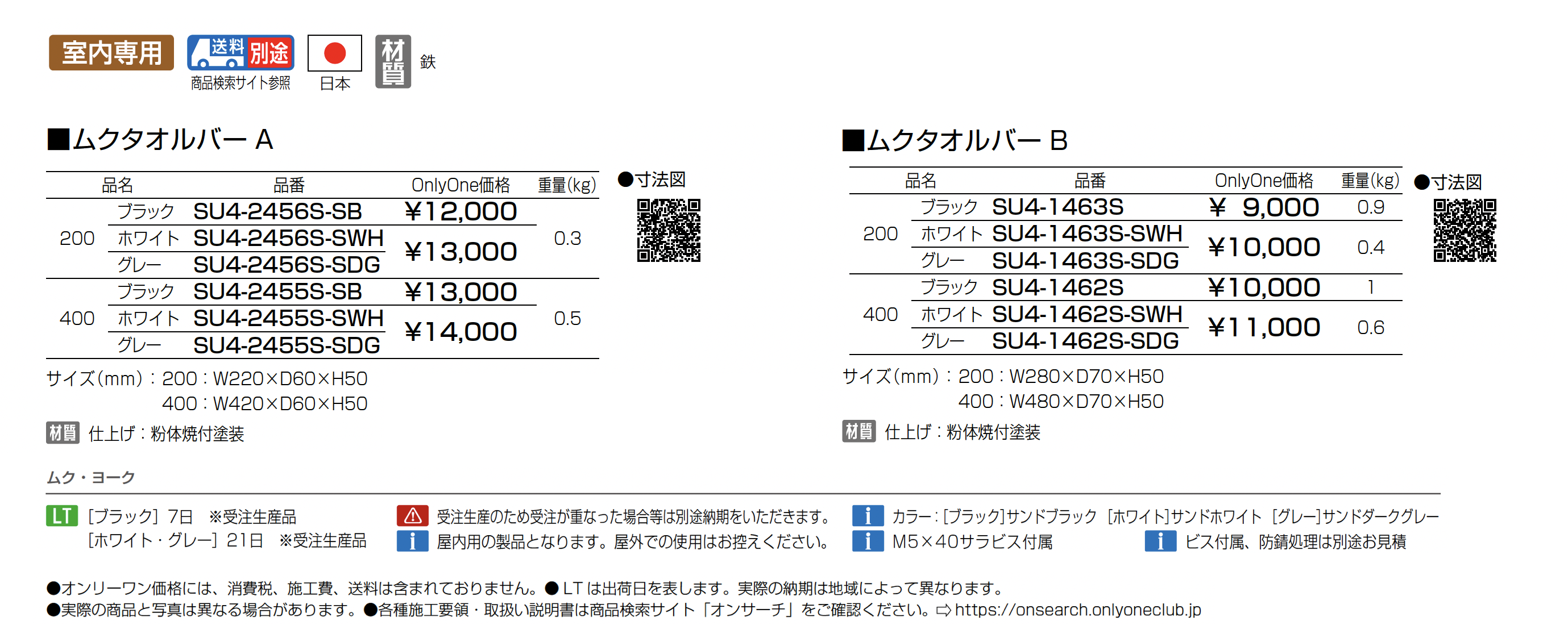 | 標準納期 | 実働7日(受注生産品)/実働21日(受注生産品) |