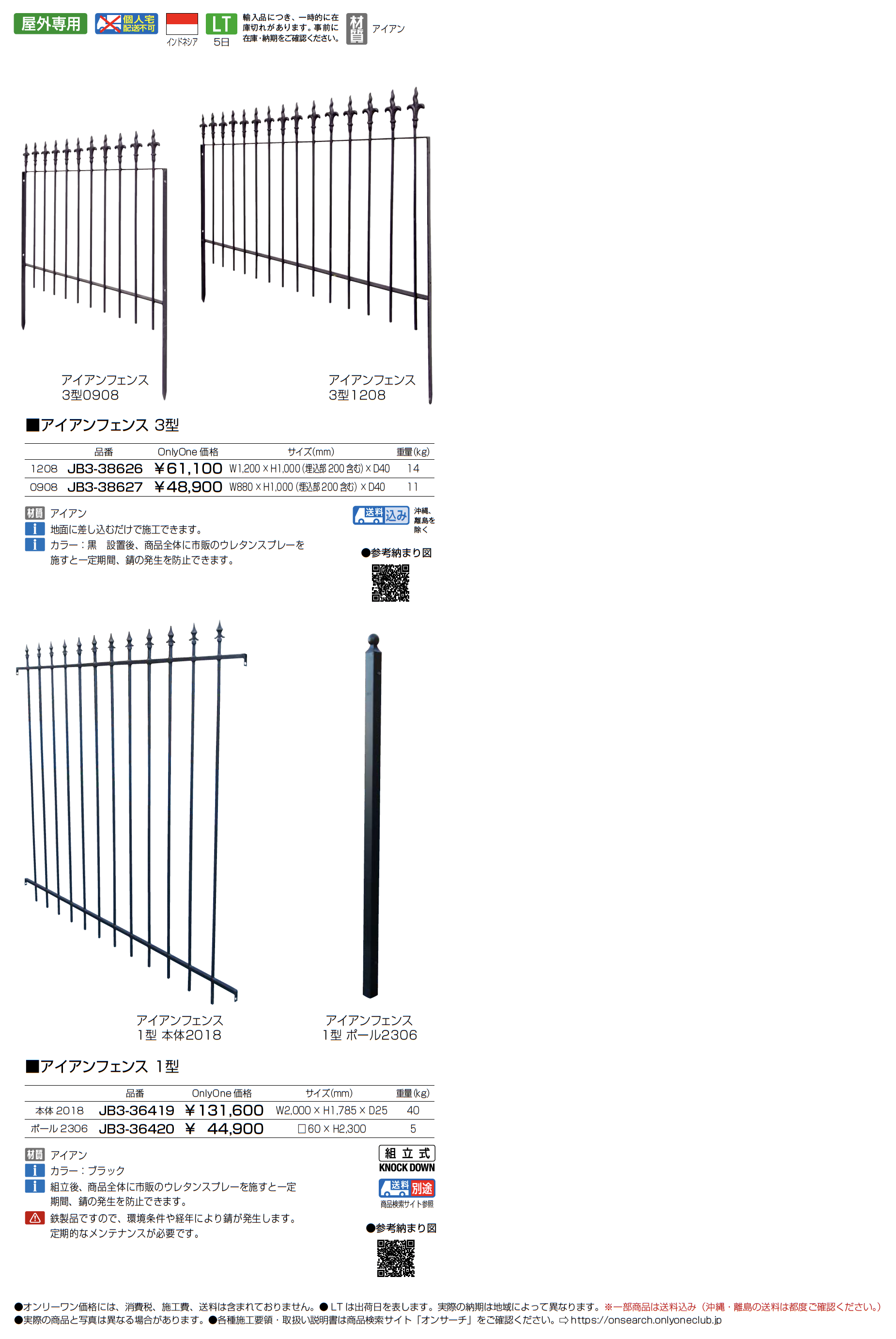 | 新旧品 | アイアンフェンス【2025年版】(ガーデン&リビング 2025/G18) |