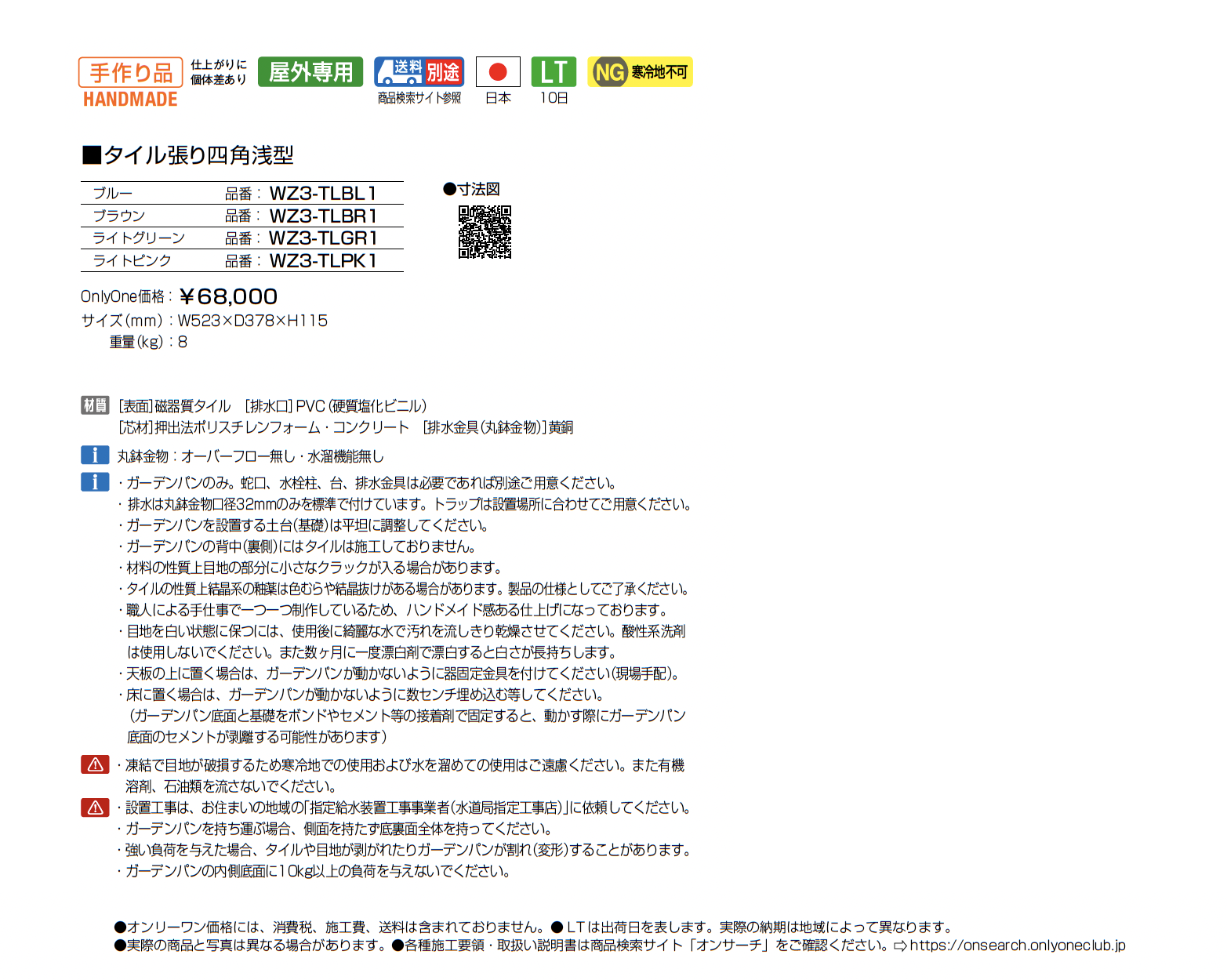 | 新旧品 | タイル張り四角浅型【2025年版】(ガーデン&リビング 2025/G18) |