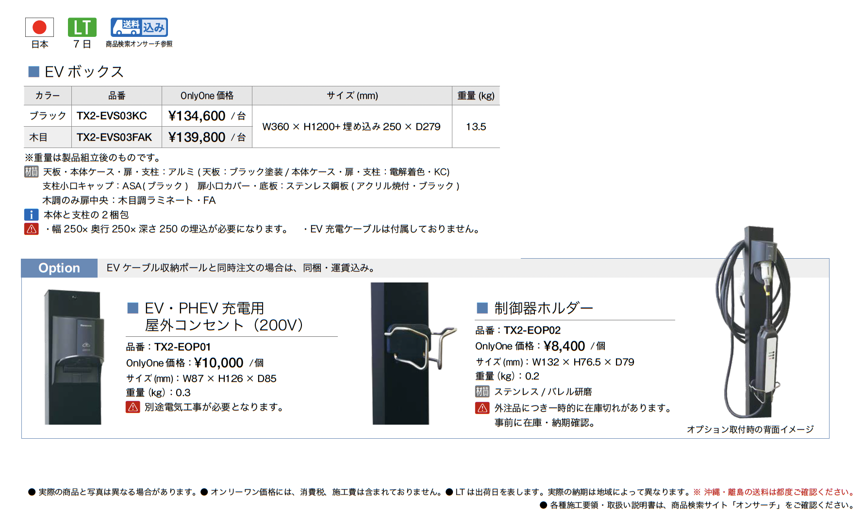 | 材質 | アルミ(天板:ブラック塗装/本体ケース・扉・支柱:電解着色・KC) ASA(ブラック) ステンレス鋼板(アクリル焼付・ブラック) 木目調ラミネート・FA |