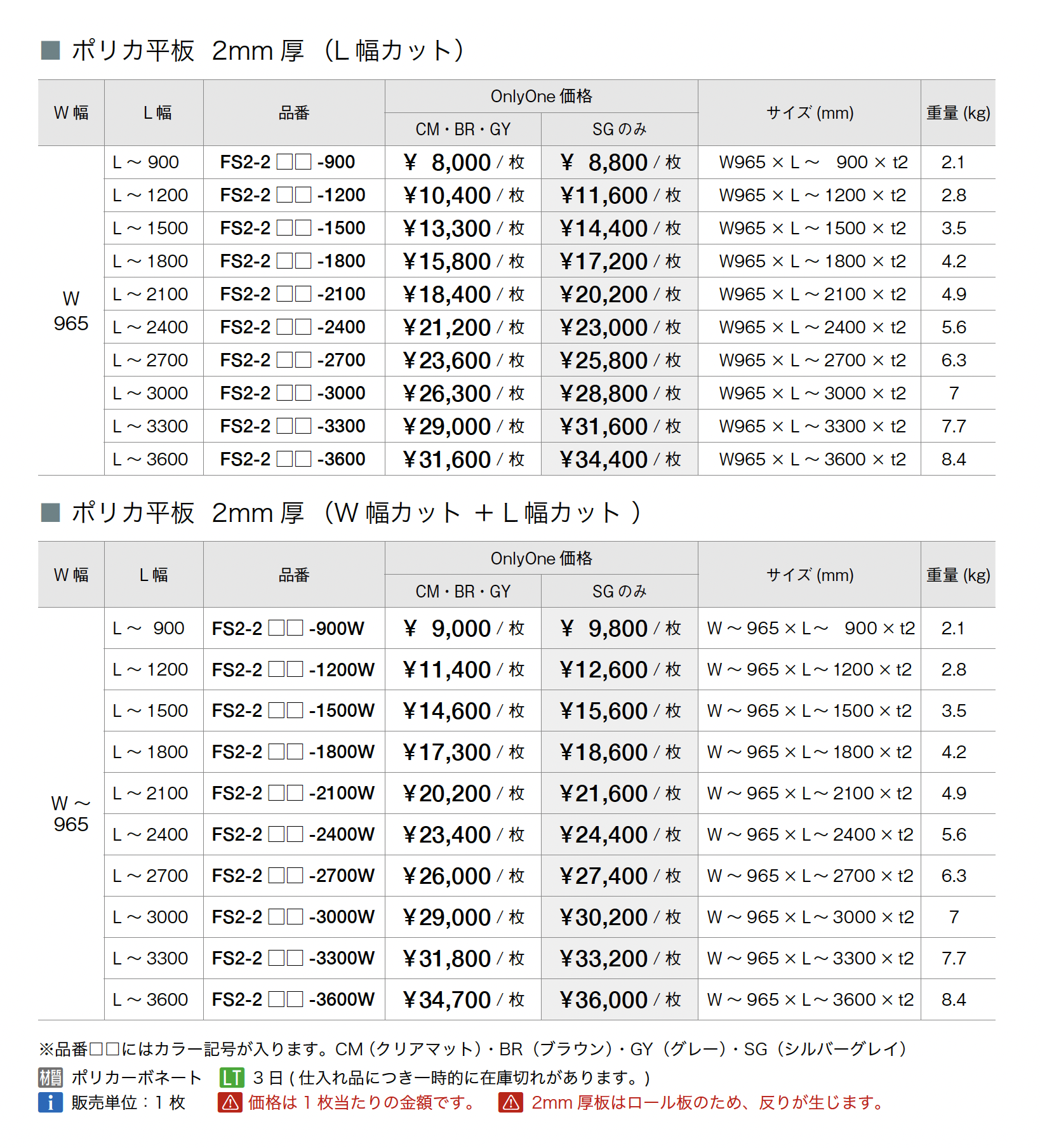 | 新旧品 | アルミ樹脂複合板・ポリカ平板【2025年版】(マテリアル 2025/M19) |