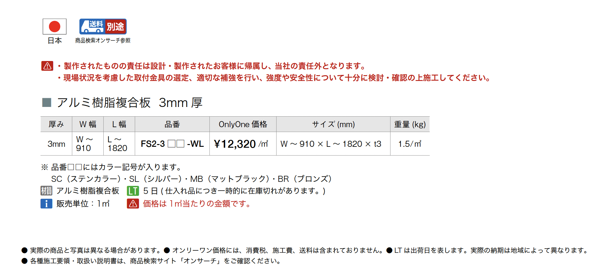 | 標準納期 | 実働3日(要確認)/実働5日(要確認) |