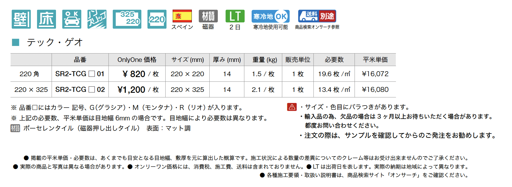 | 材質 | 磁器 ポーセレンタイル(磁器押し出しタイル) マット調 |
