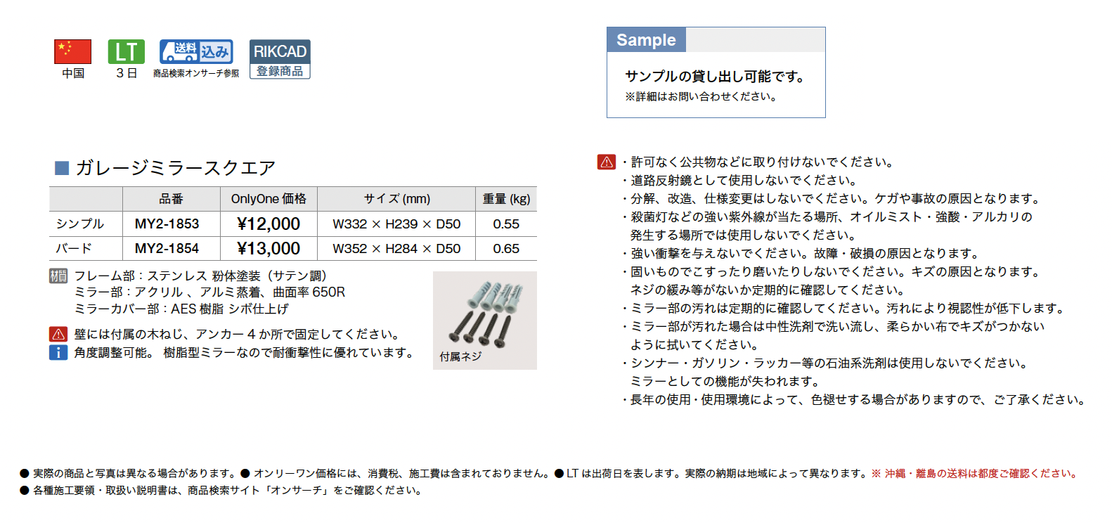 | 新旧品 | ガレージミラー【2025年版】(マテリアル 2025/M19) |