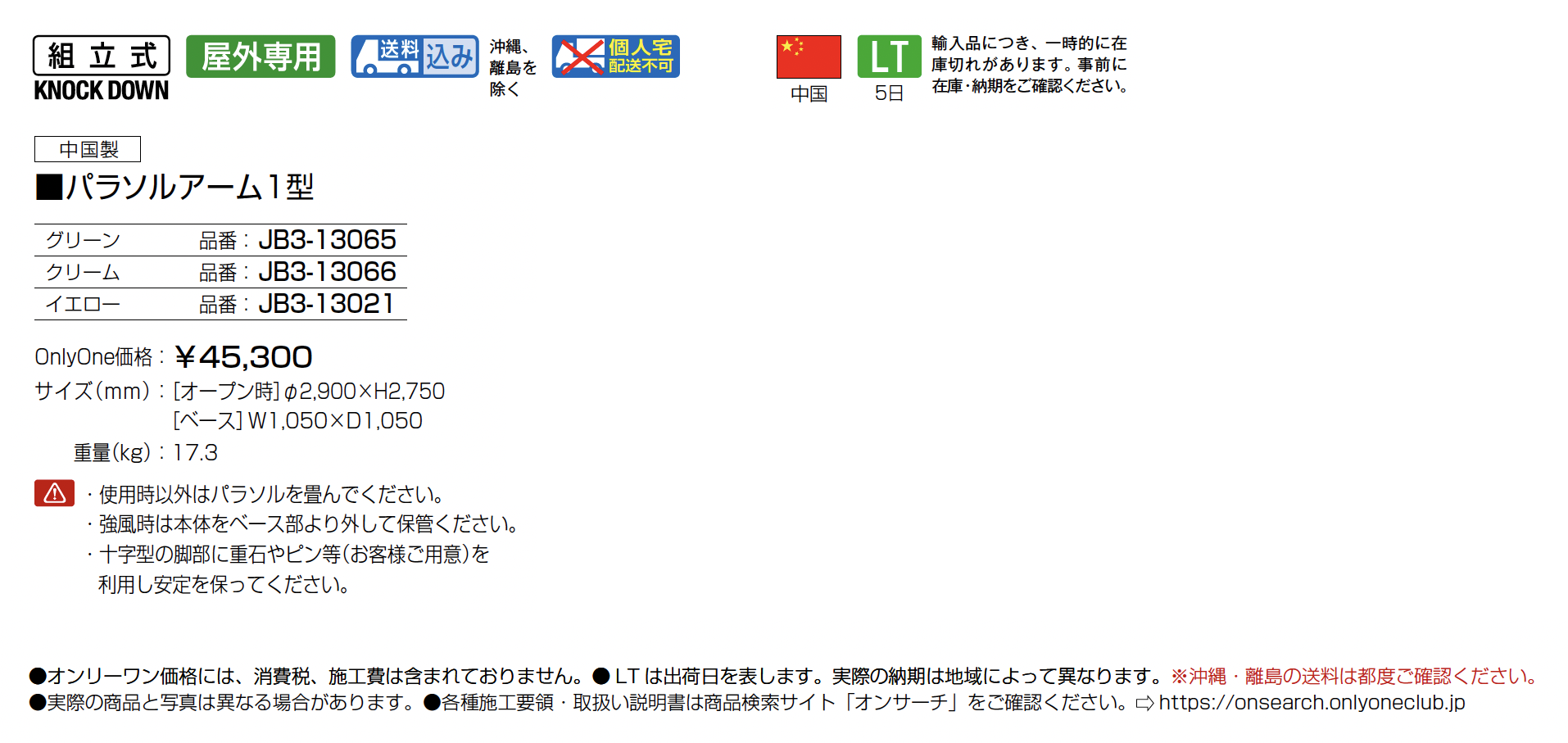 | 新旧品 | アンブレラアーム1型【2025年版】(ガーデン&リビング 2025/G18) |