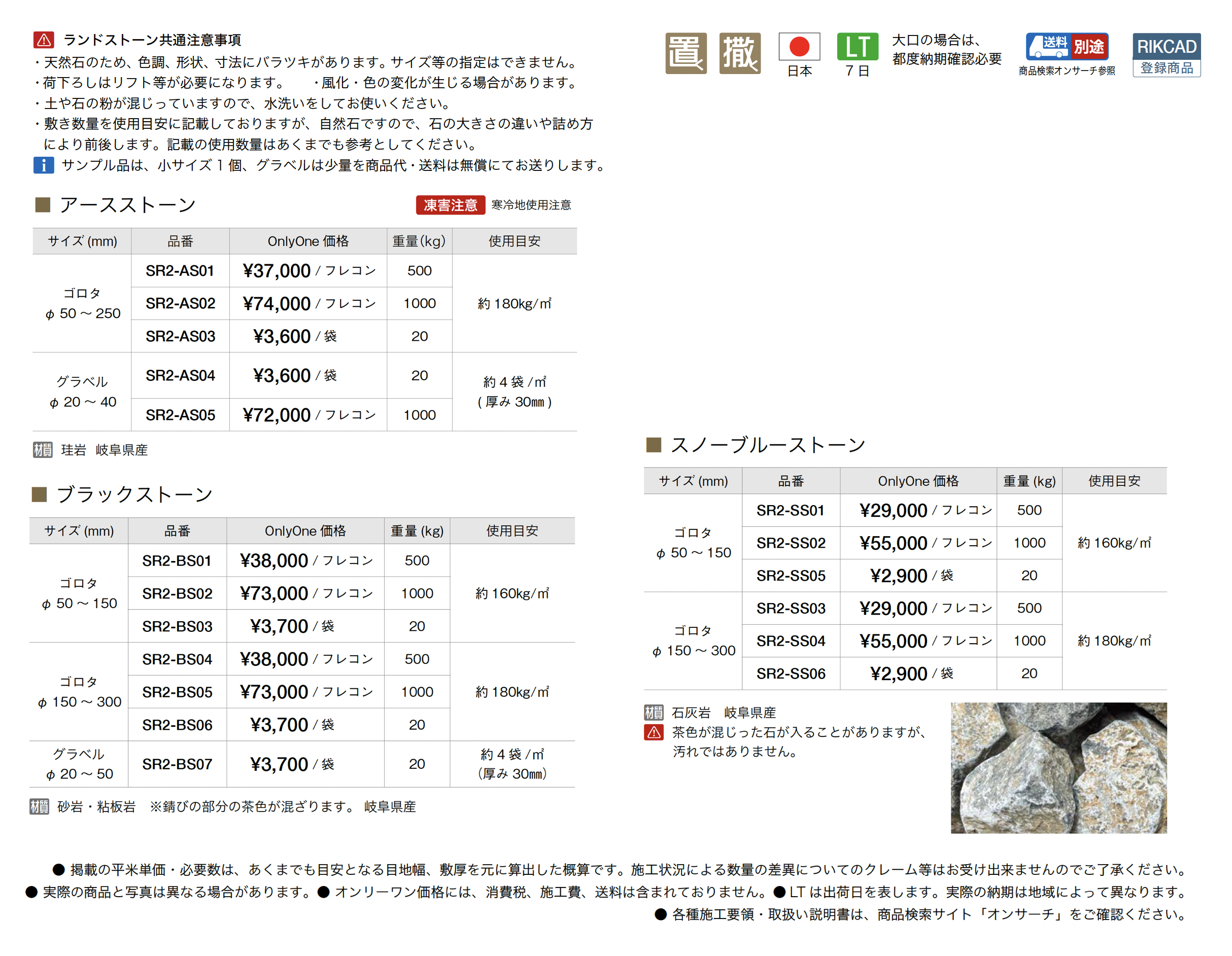 | 材質 | 硅岩 岐阜県産 砂岩・粘板岩 岐阜県産 石灰岩 岐阜県産 |