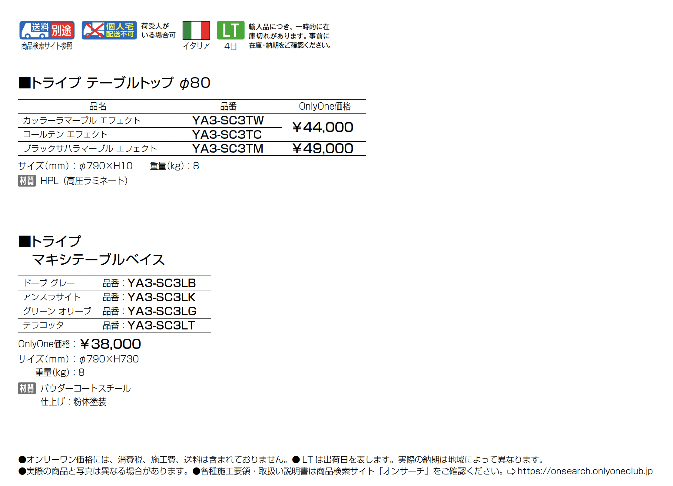 | カラー | カッラーラマーブルエフェクト コールテンエフェクト ブラックサハラマーブルエフェクト ドーブグレー アンスラサイト グリーンオリーブ テラコッタ |
