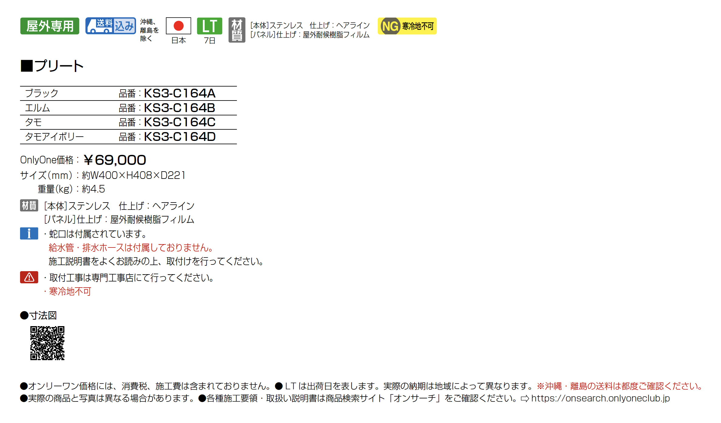 | 材質 | ステンレス ヘアライン 屋外耐候樹脂フィルム |
