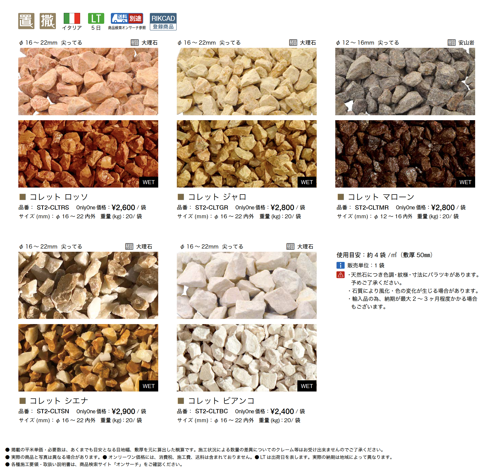 | カラー | ロッソ ジャロ マローン シエナ ビアンコ |