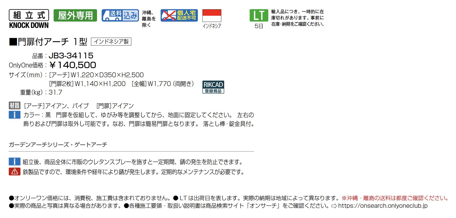 | 新旧品 | 門扉付アーチ【2025年版】(ガーデン&リビング 2025/G18) |