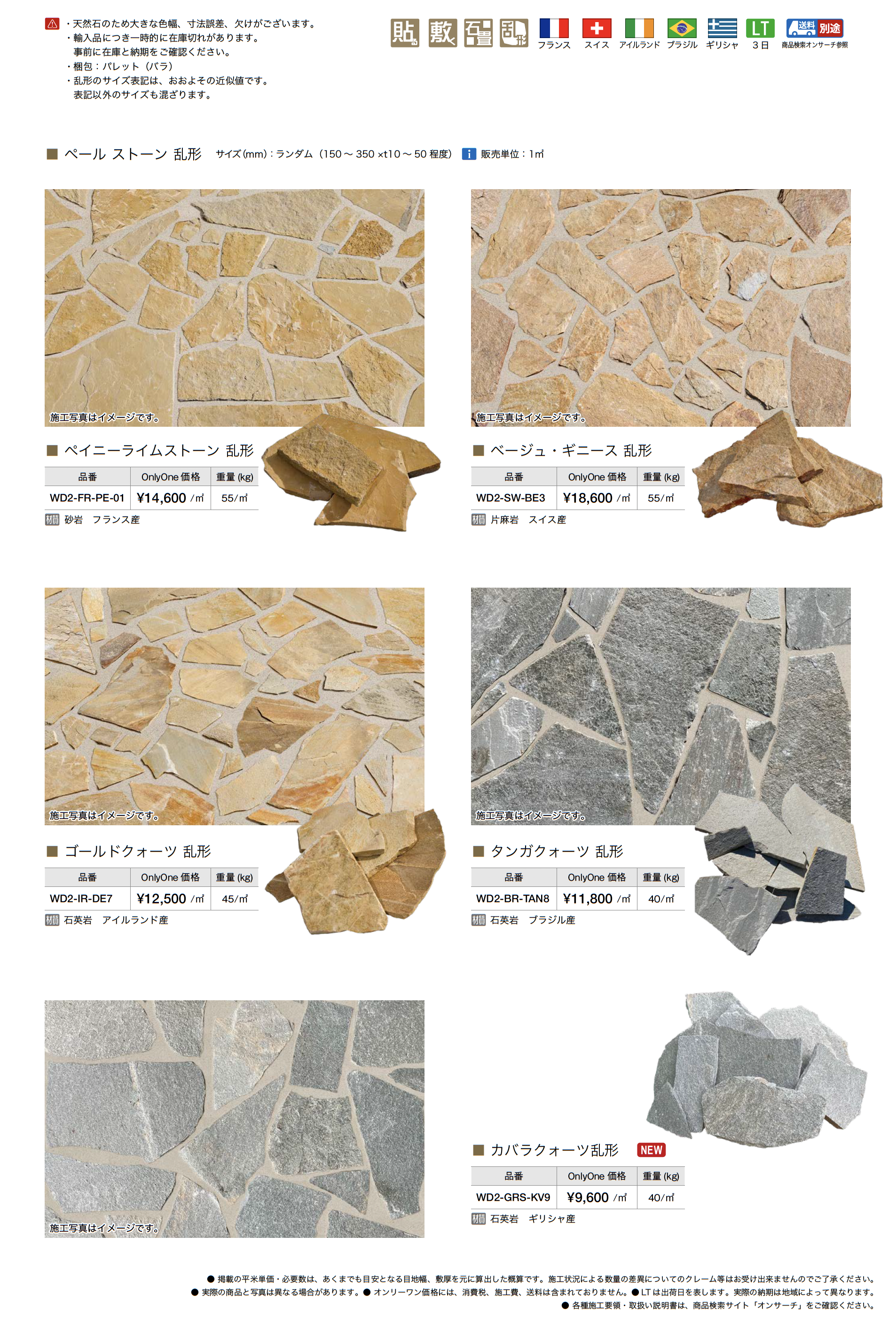 | 材質 | 砂岩 フランス産 片麻岩 スイス産 石英岩 アイルランド産 石英岩 ブラジル産 石英岩 ギリシャ産 |