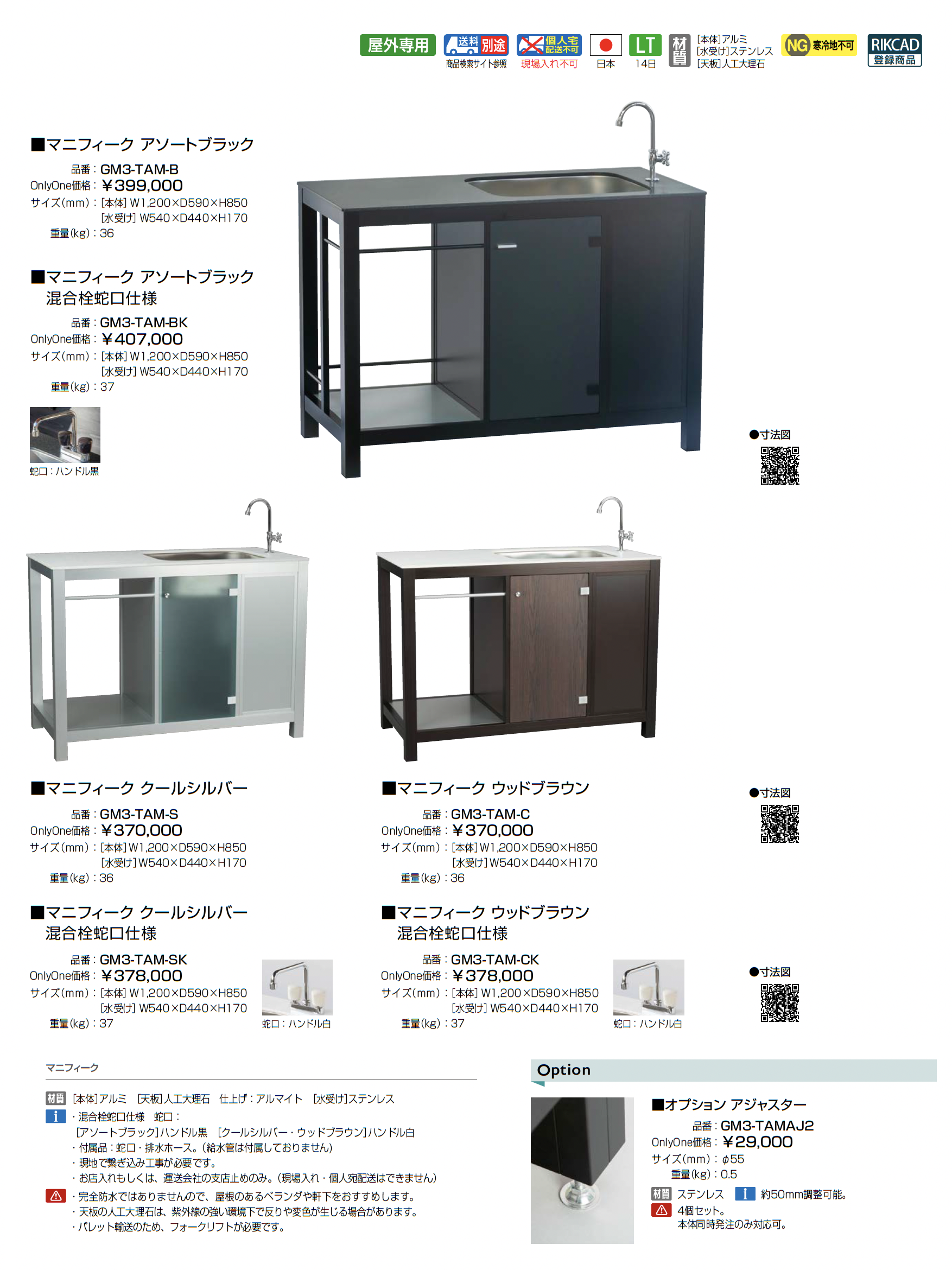 | 材質 | アルミ 人工大理石 アルマイト ステンレス |