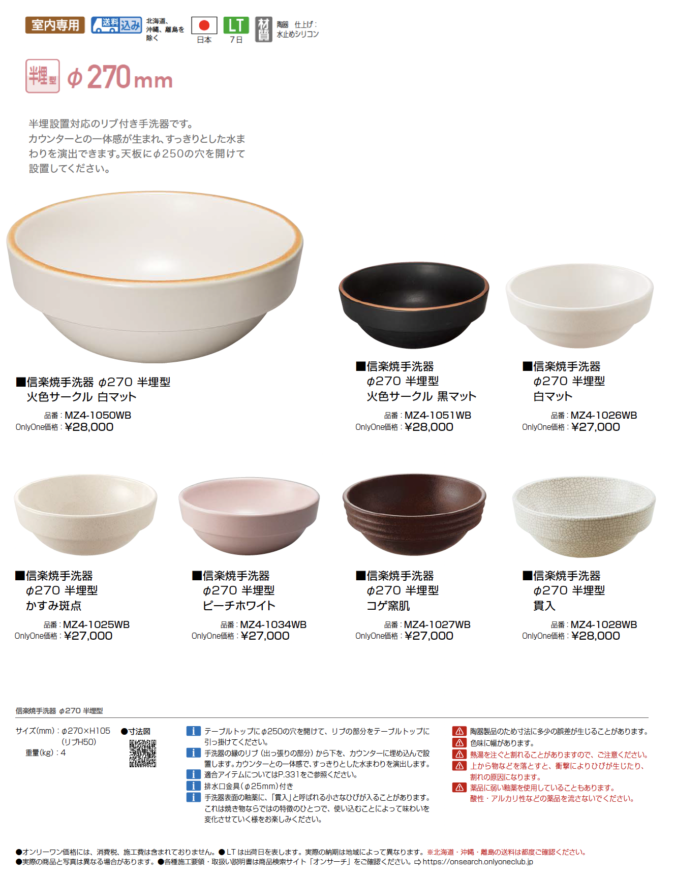 | 新旧品 | 信楽焼手洗器 Φ270半埋型【2025年版】(ガーデン&リビング 2025/G18) |