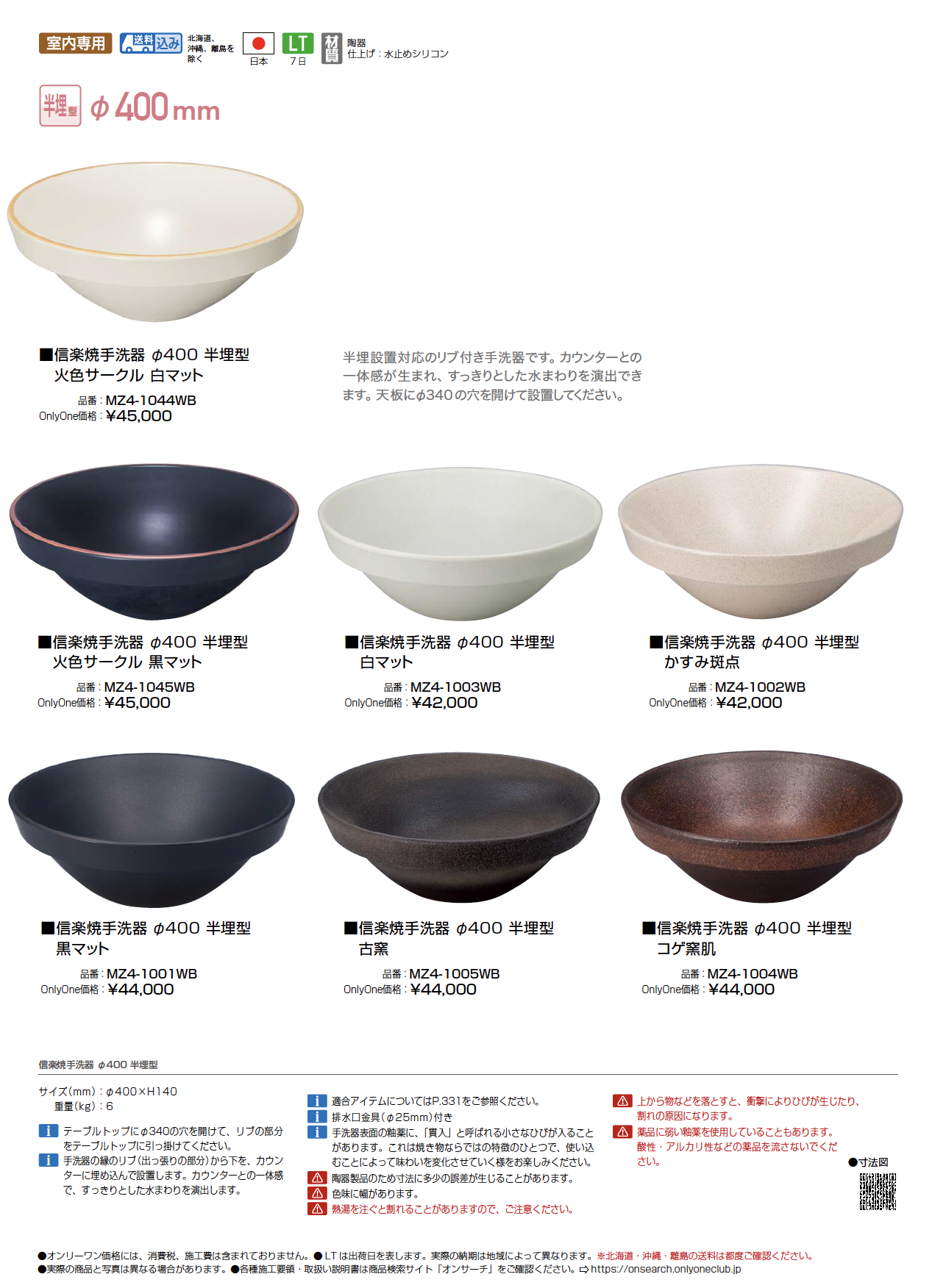 | 新旧品 | 信楽焼手洗器 Φ400半埋型【2025年版】(ガーデン&リビング 2025/G18) |