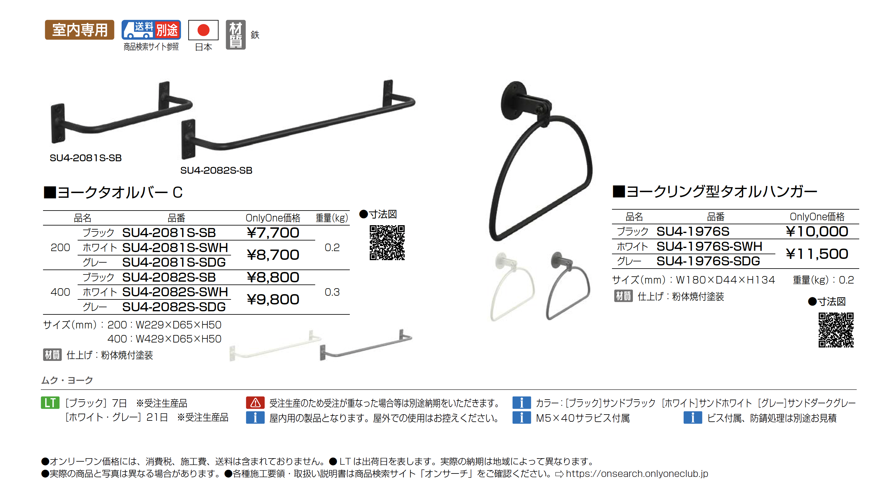 | 標準納期 | 実働7日(受注生産品)/実働21日(受注生産品) |
