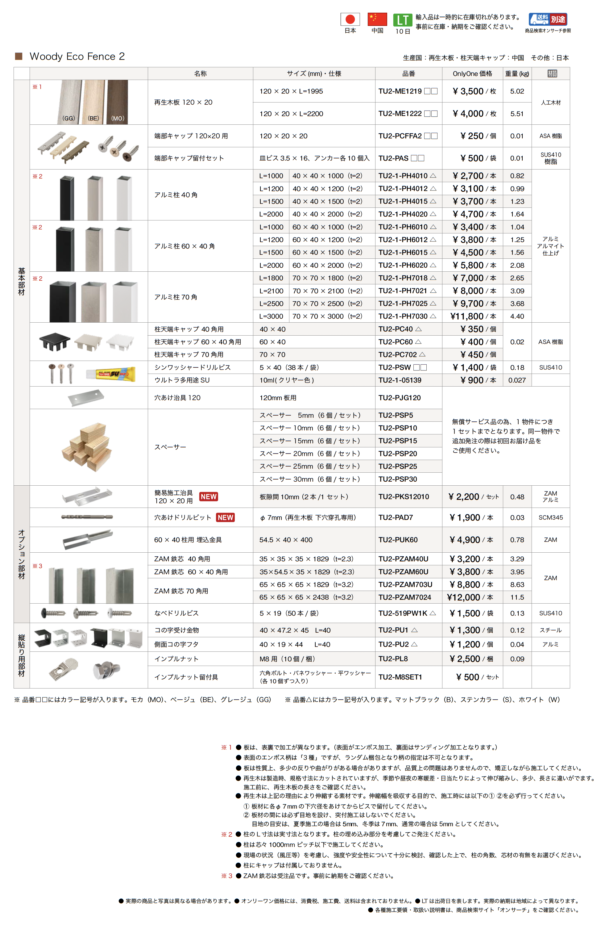 | 材質 | 人工木材 ASA樹脂 SUS410 樹脂 アルミ アルマイト仕上げ ZAM アルミ スチール |