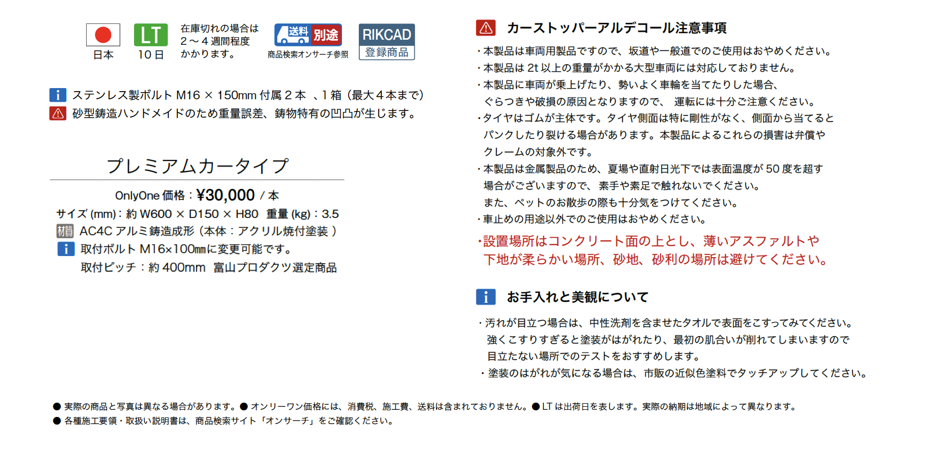 | 材質 | AC4C アルミ鋳造成形(アクリル焼付塗装) アクリル焼付塗装 |