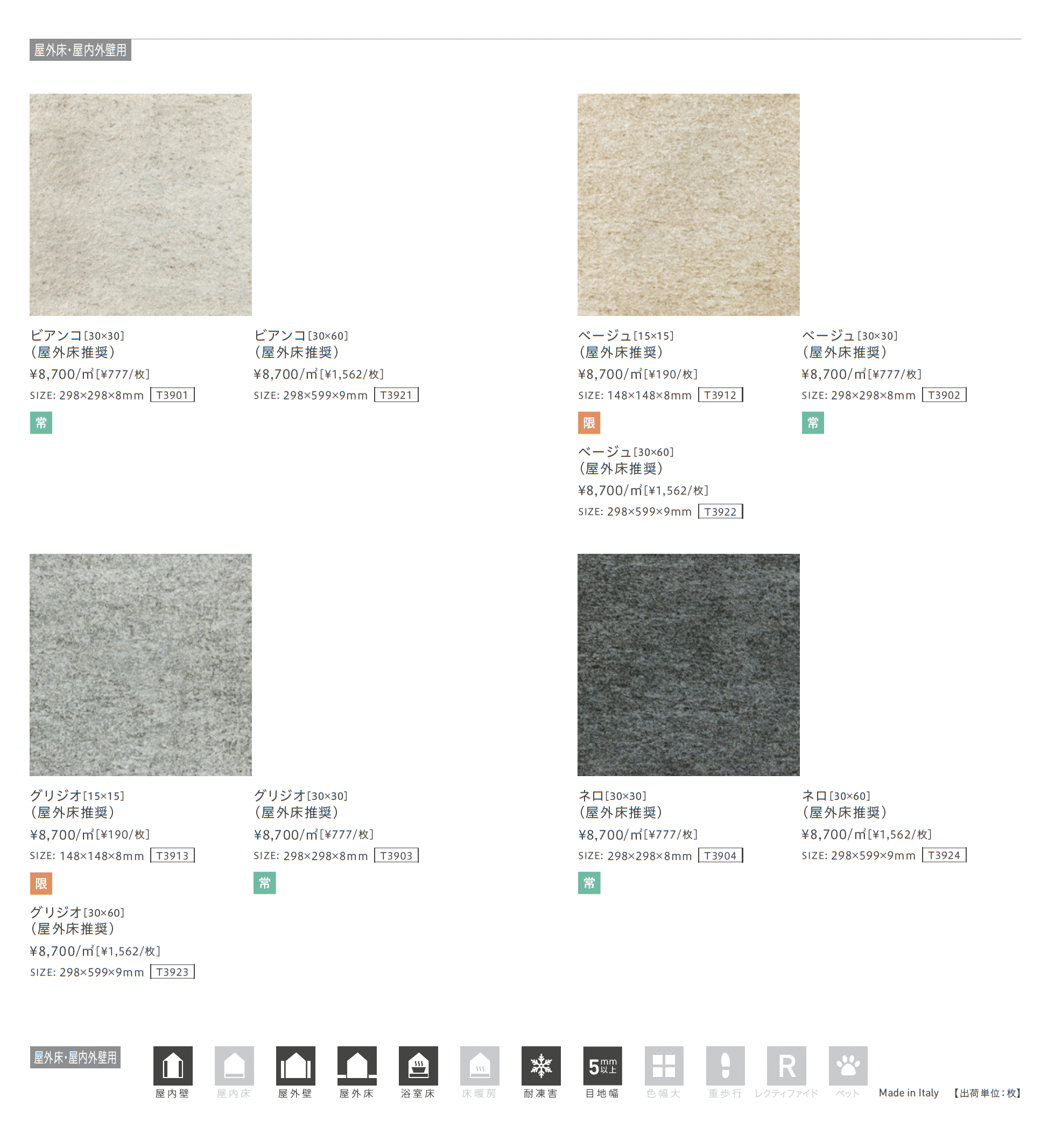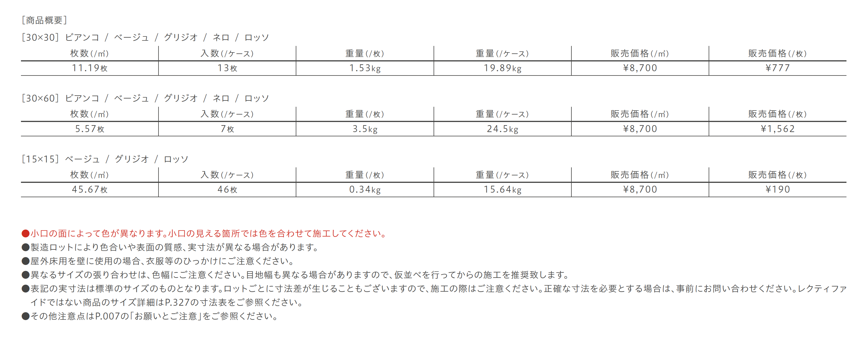 | カラー | ビアンコ ベージュ グリジオ ネロ ロッソ |