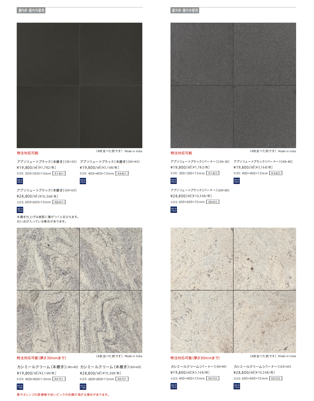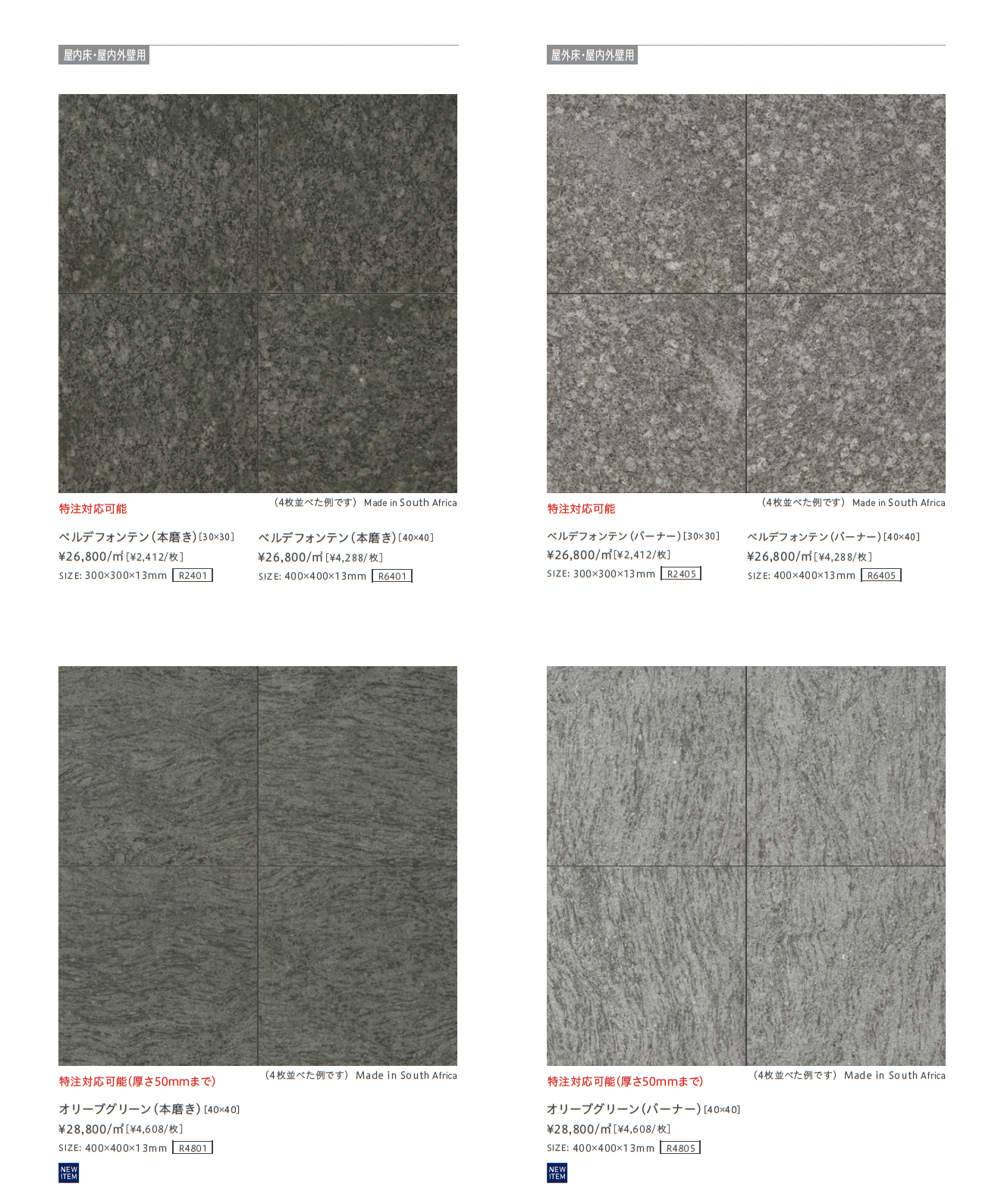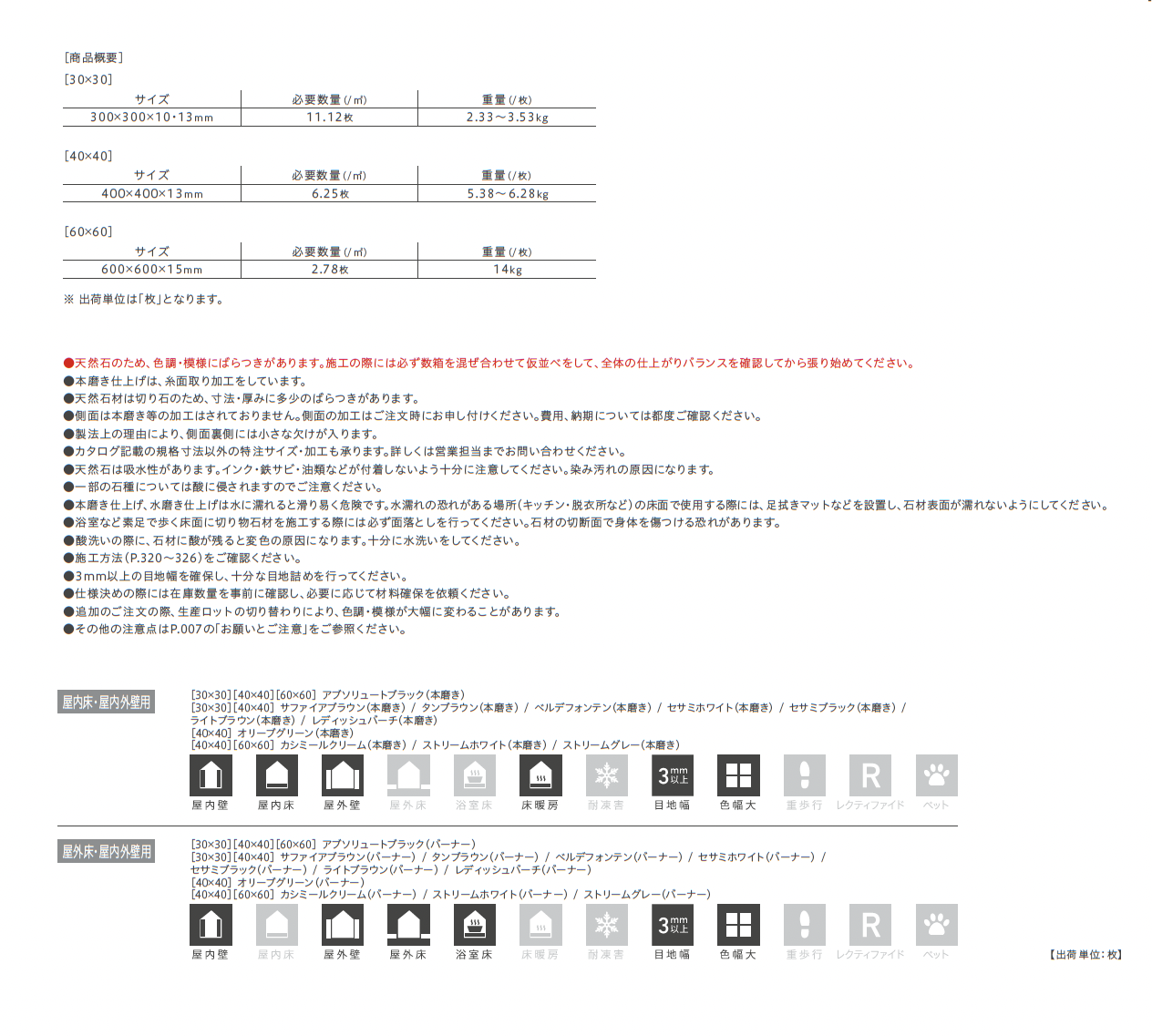 カラー | アブソリュートブラック(本磨き) アブソリュートブラック(バーナー) カシミールクリーム(本磨き) カシミールクリーム(バーナー) ストリームホワイト(本磨き) ストリームホワイト(バーナー) ストリームグレー(本磨き) ストリームグレー(バーナー) サファイアブラウン(本磨き) サファイアブラウン(バーナー) タンブラウン(本磨き) タンブラウン(バーナー) ベルデフォンテン(本磨き) ベルデフォンテン(バーナー) オリーブグリーン(本磨き) オリーブグリーン(バーナー) セサミホワイト(本磨き) セサミホワイト(バーナー) セサミブラック(本磨き) セサミブラック(バーナー) ライトブラウン(本磨き) ライトブラウン(バーナー) レディッシュバーチ(本磨き) レディッシュバーチ(バーナー) |