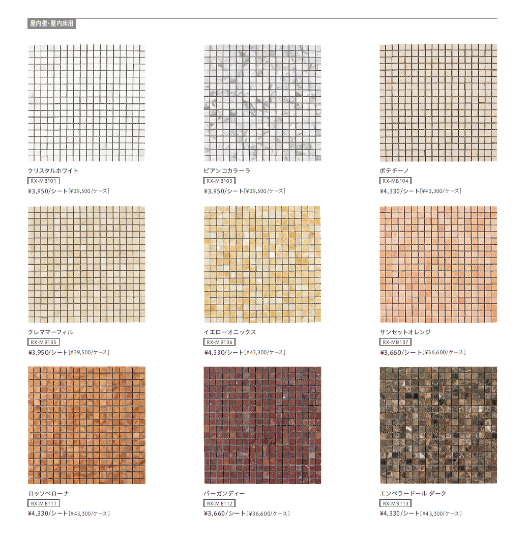 | 新旧品 | 大理石モザイク(総合カタログ VOL.21)大理石モザイク【2025年版】(総合カタログ VOL.20) |