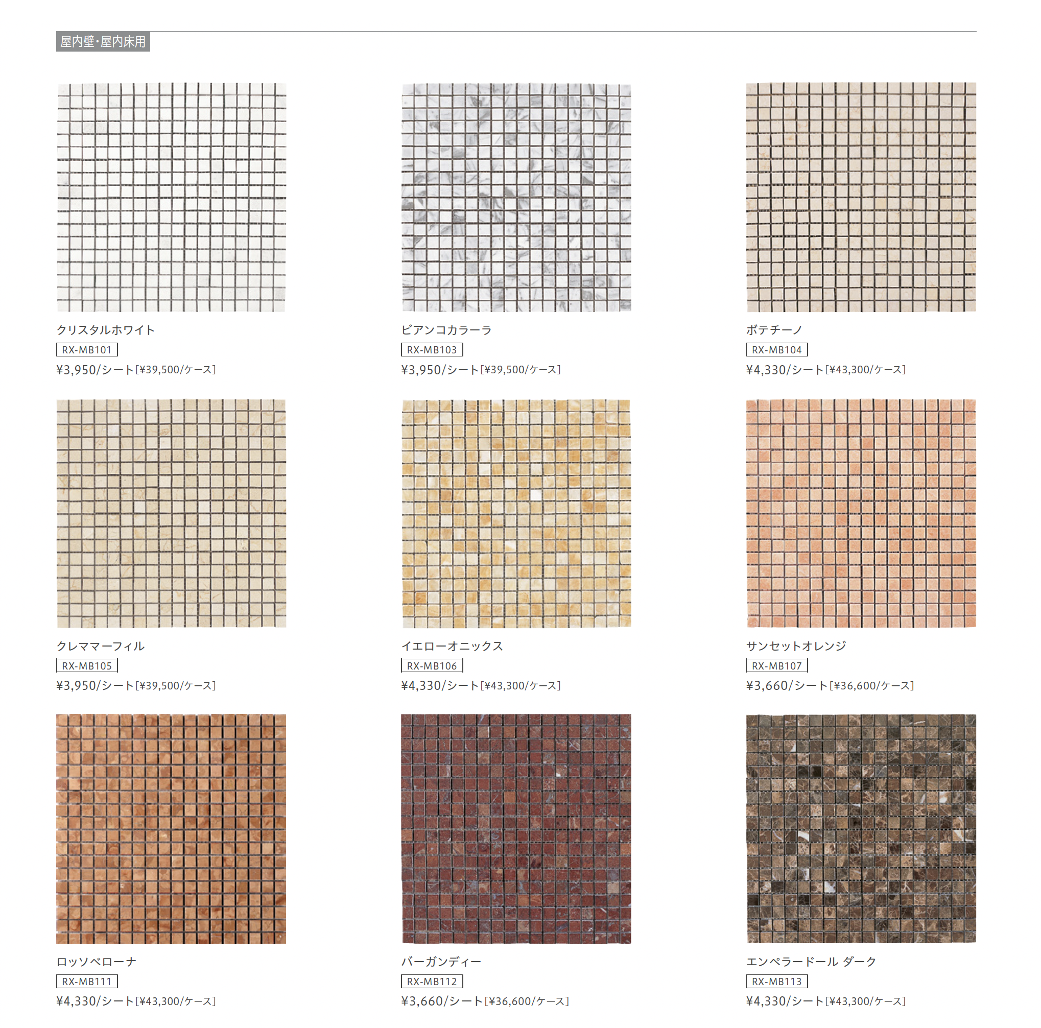| 新旧品 | 大理石モザイク【2025年版】(総合カタログ VOL.20)大理石モザイク【2023年版】(RIVIERA_VOL19-3) |