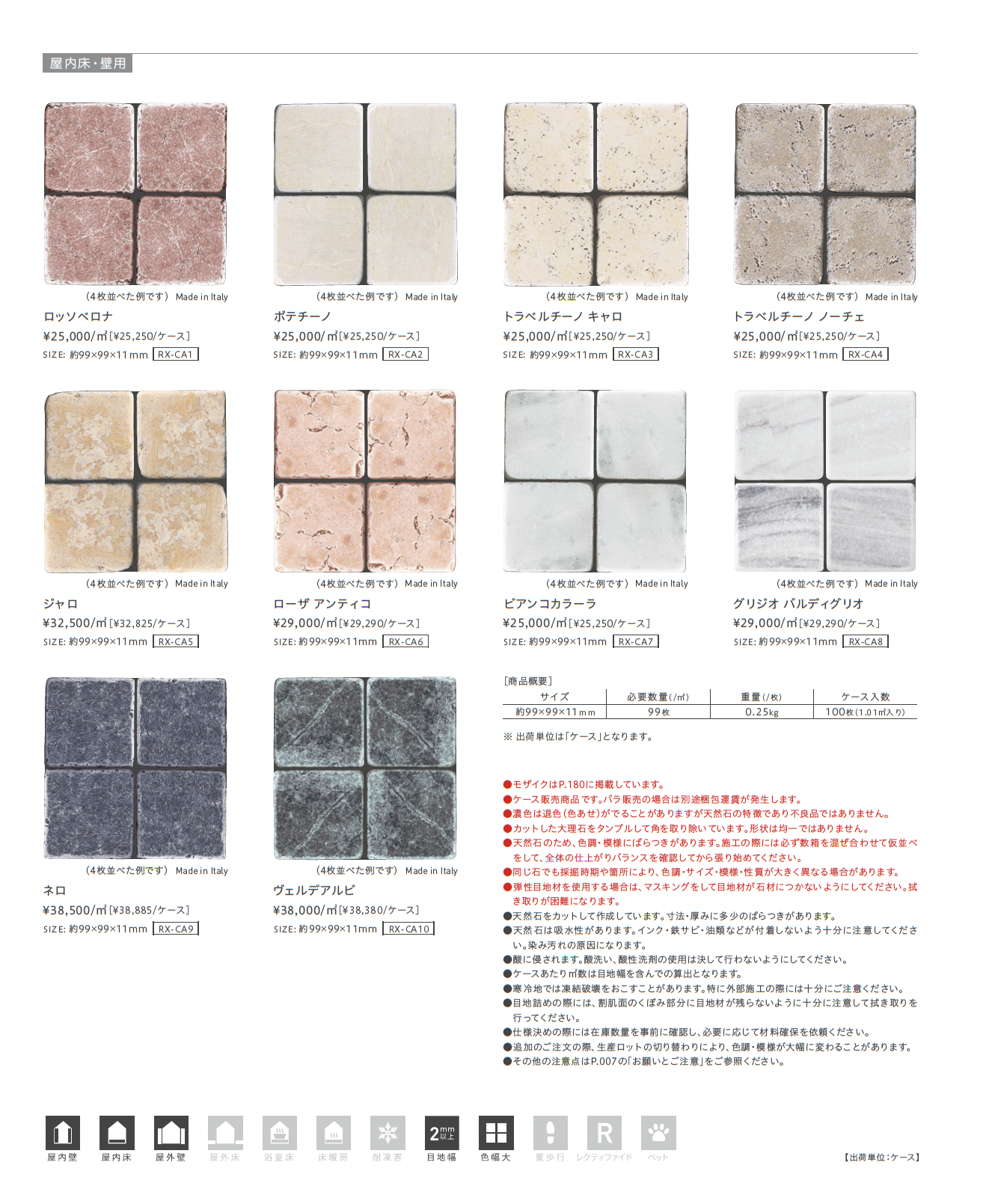 カラー | ロッソベロナ ボテチーノ トラベルチーノ キャロ トラベルチーノ ノーチェ ジャロ ローザアンティコ ビアンコカラーラ グリジオ バルディグリオ ネロ ヴェルデアルビ |