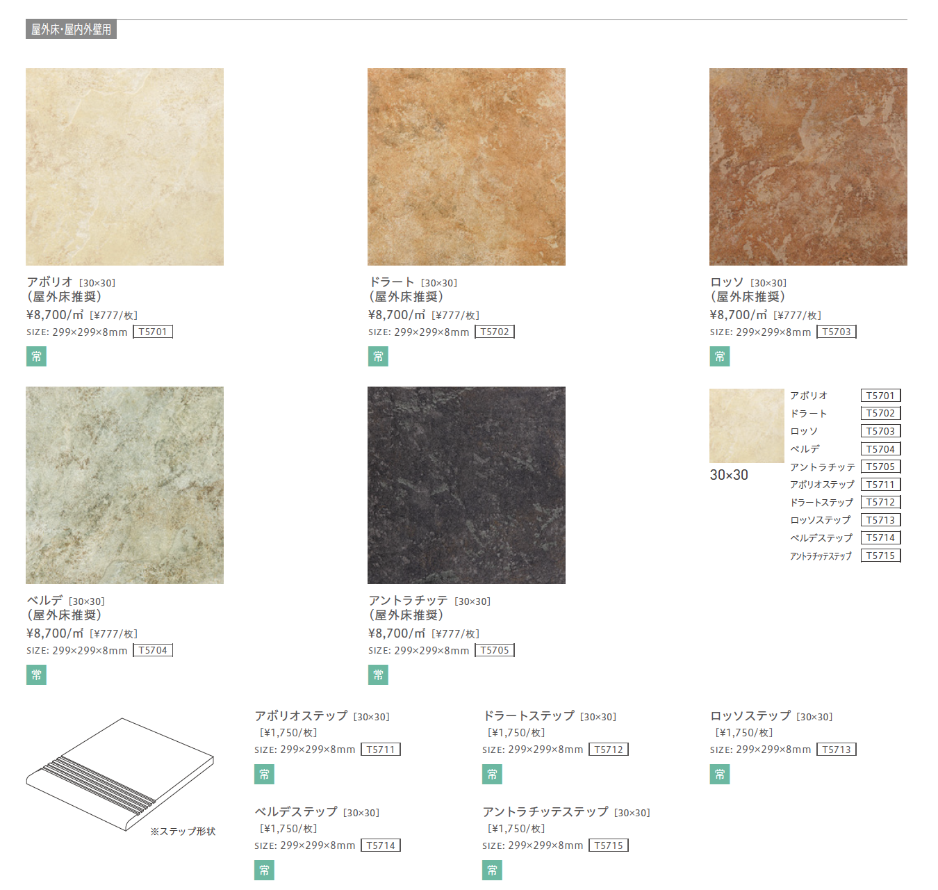 | 強度 | 曲げ強度:ISO 10545-4 46.5N/m㎡ 耐凍害性:ISO 10545-12 異常なし 耐薬品性:ISO 10545-13 異常なし |