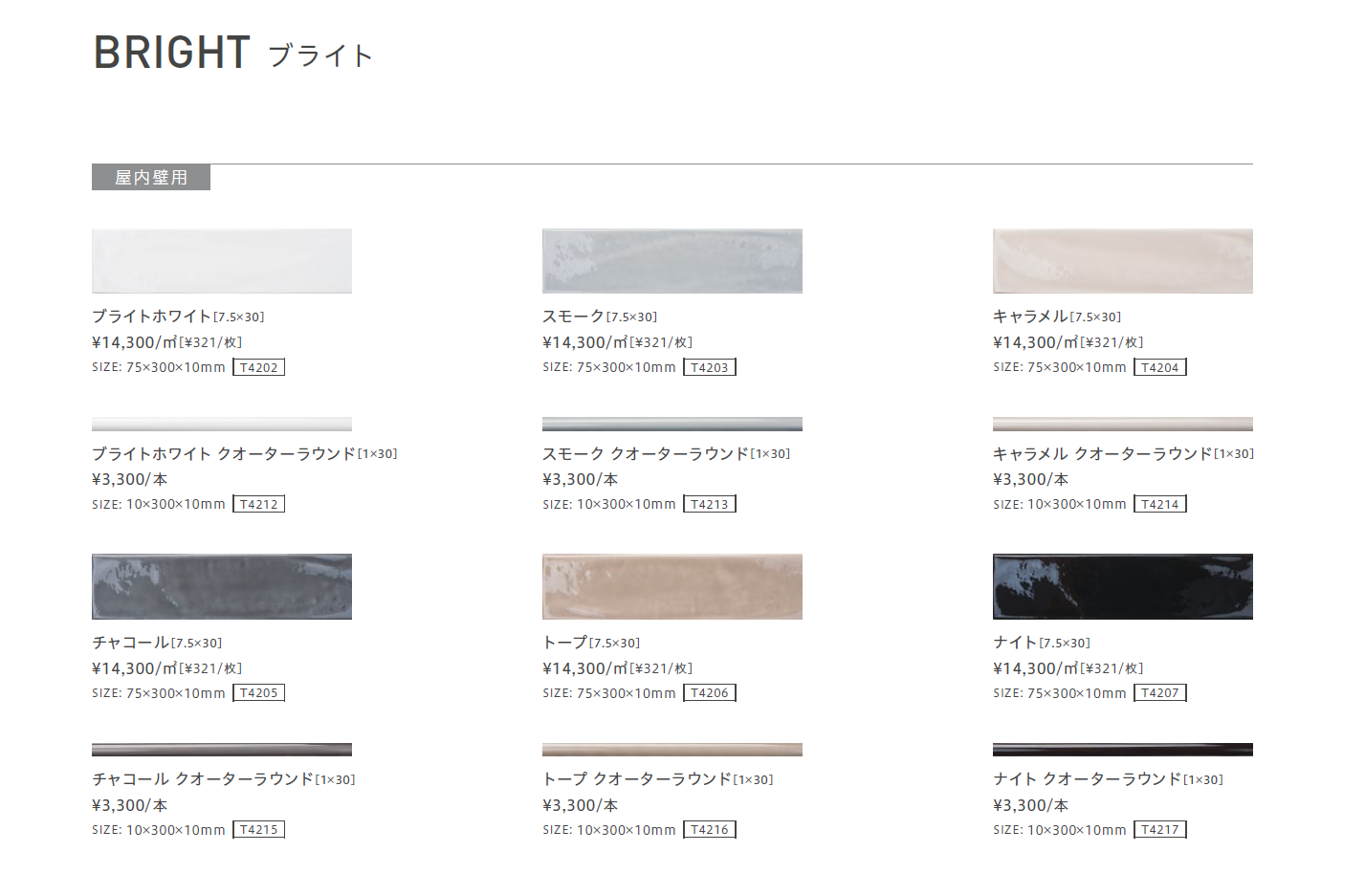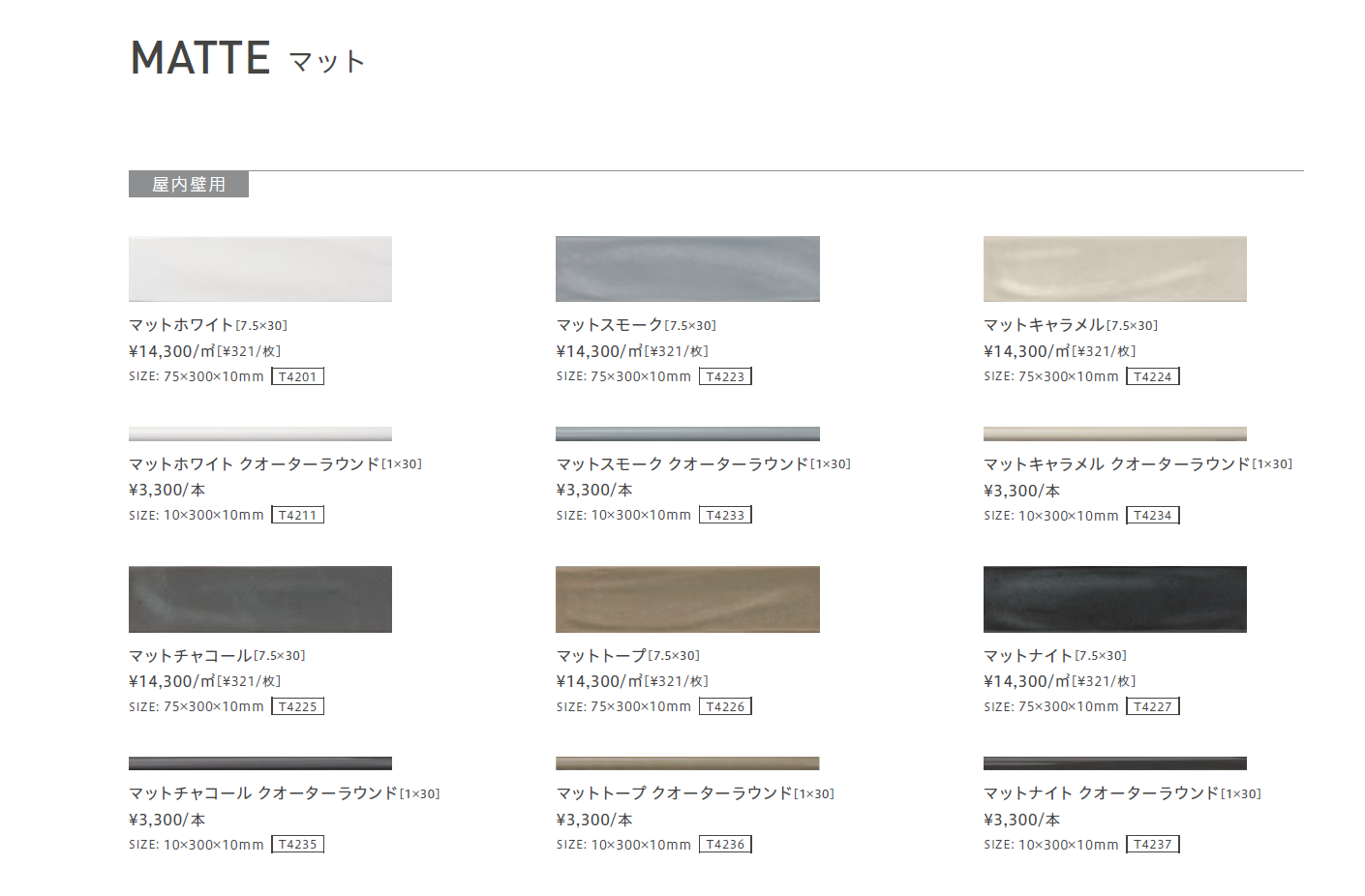 | 強度 | 曲げ強度:ISO 10545-4 23N/m㎡ 耐薬品性:ISO 10545-13 異常なし |