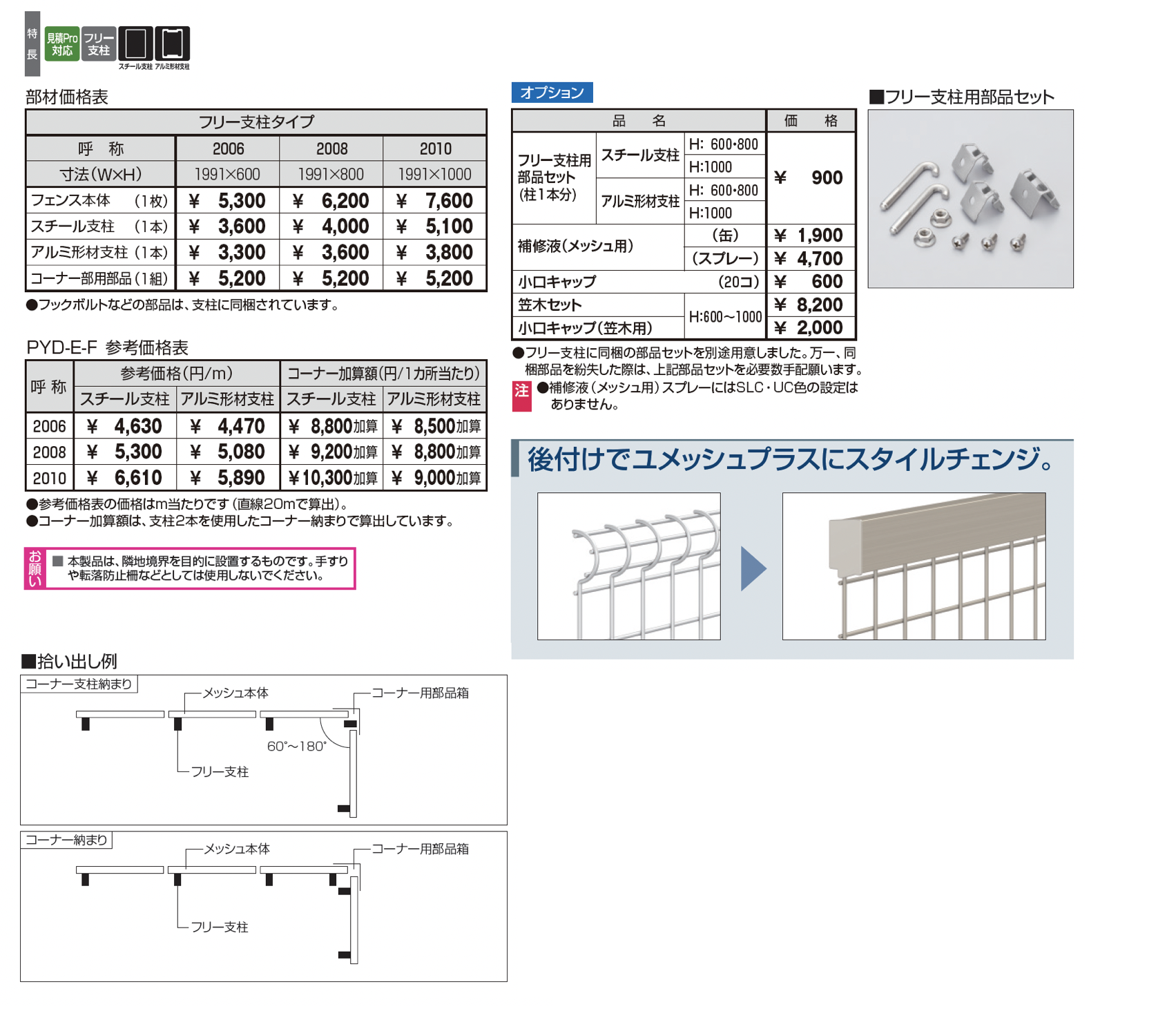 新旧品 | ユメッシュE型フェンス フリー支柱タイプ(パブリックエクステリア 総合カタログ2025)ユメッシュE型フェンス フリー支柱タイプ(パブリックエクステリア 総合カタログ 2024)ユメッシュE型フェンス フリー支柱タイプ 【2022年版】(パブリックエクステリア 総合カタログ 2022-2023(2022年11月価格改定版)) |