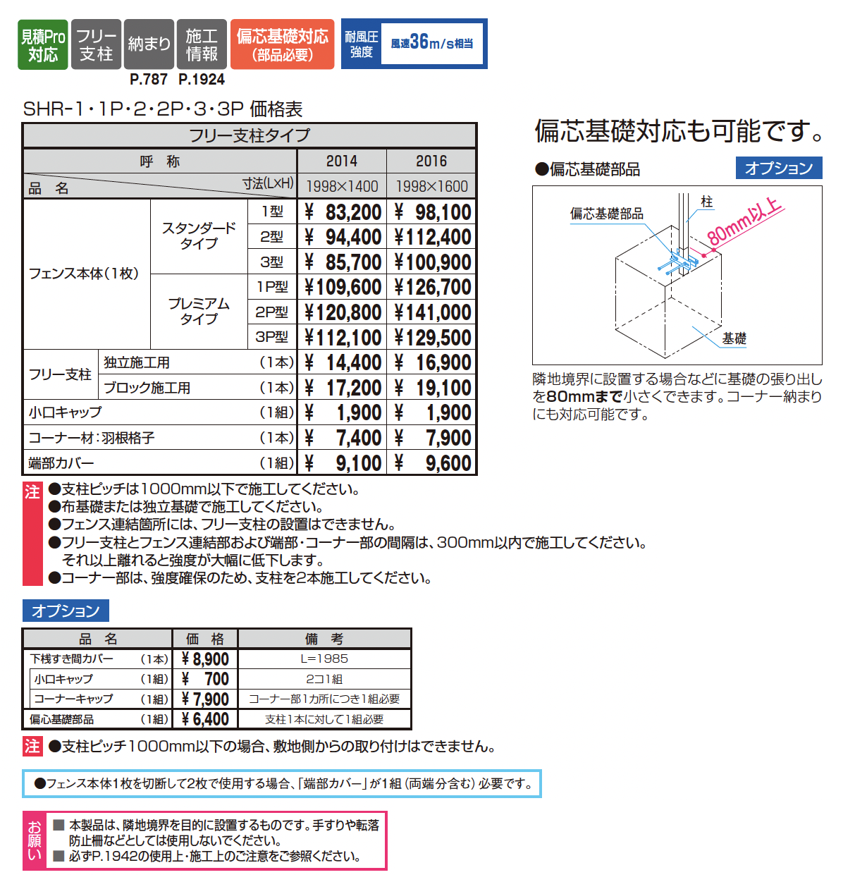 見積りシステム対応、フリー支柱、偏心基礎対応(部品必要)