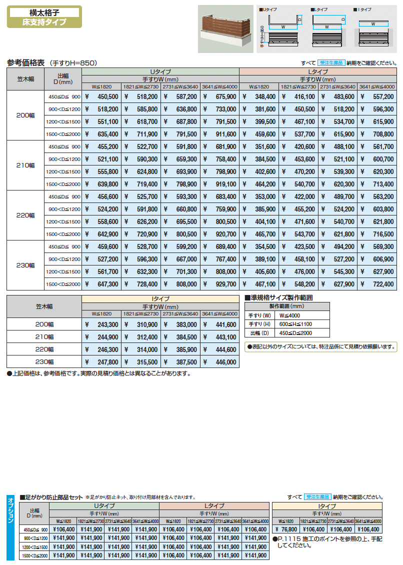 バルコニー手すりM型(横太格子 床支持タイプ)_価格_1