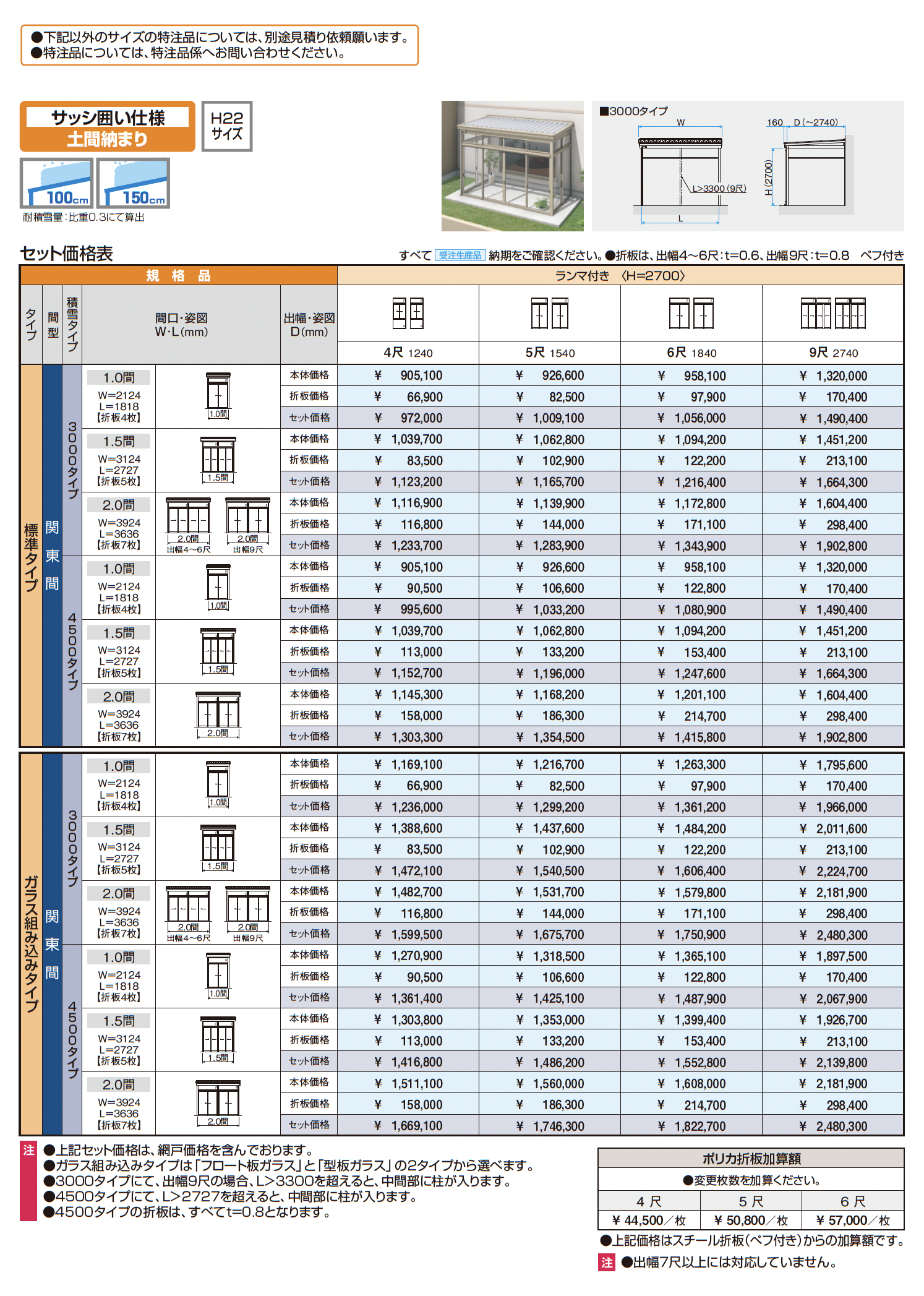 スーパーテラスGTⅡ(サッシ囲い仕様 土間納まり H22サイズ 標準タイプ) 【2022年版】(ウォールエクステリア 総合カタログ 2022-2023(2022年11月価格改定版))
