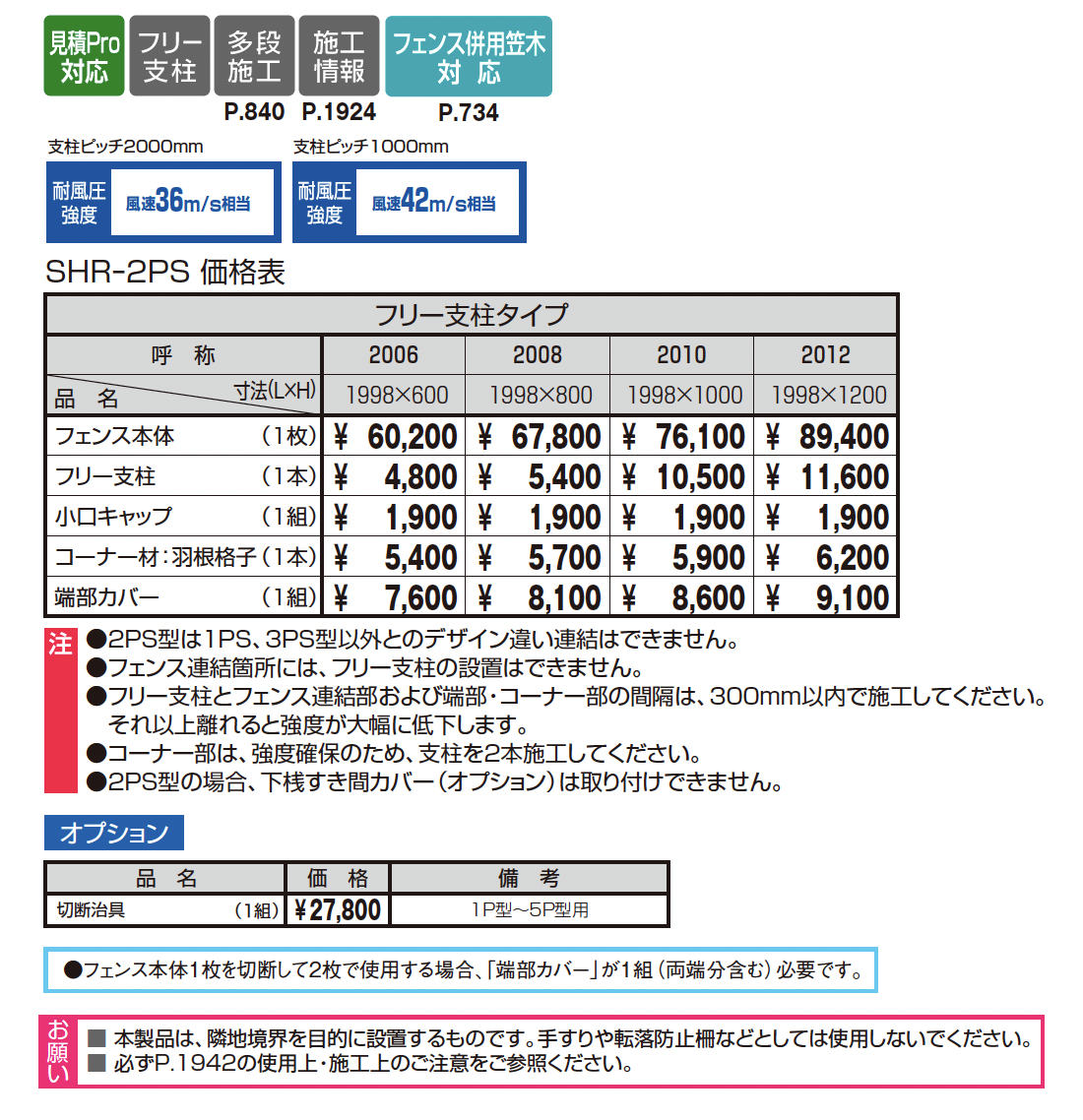 見積りシステム対応、フリー支柱、多設施工、フェンス併用笠木対応
