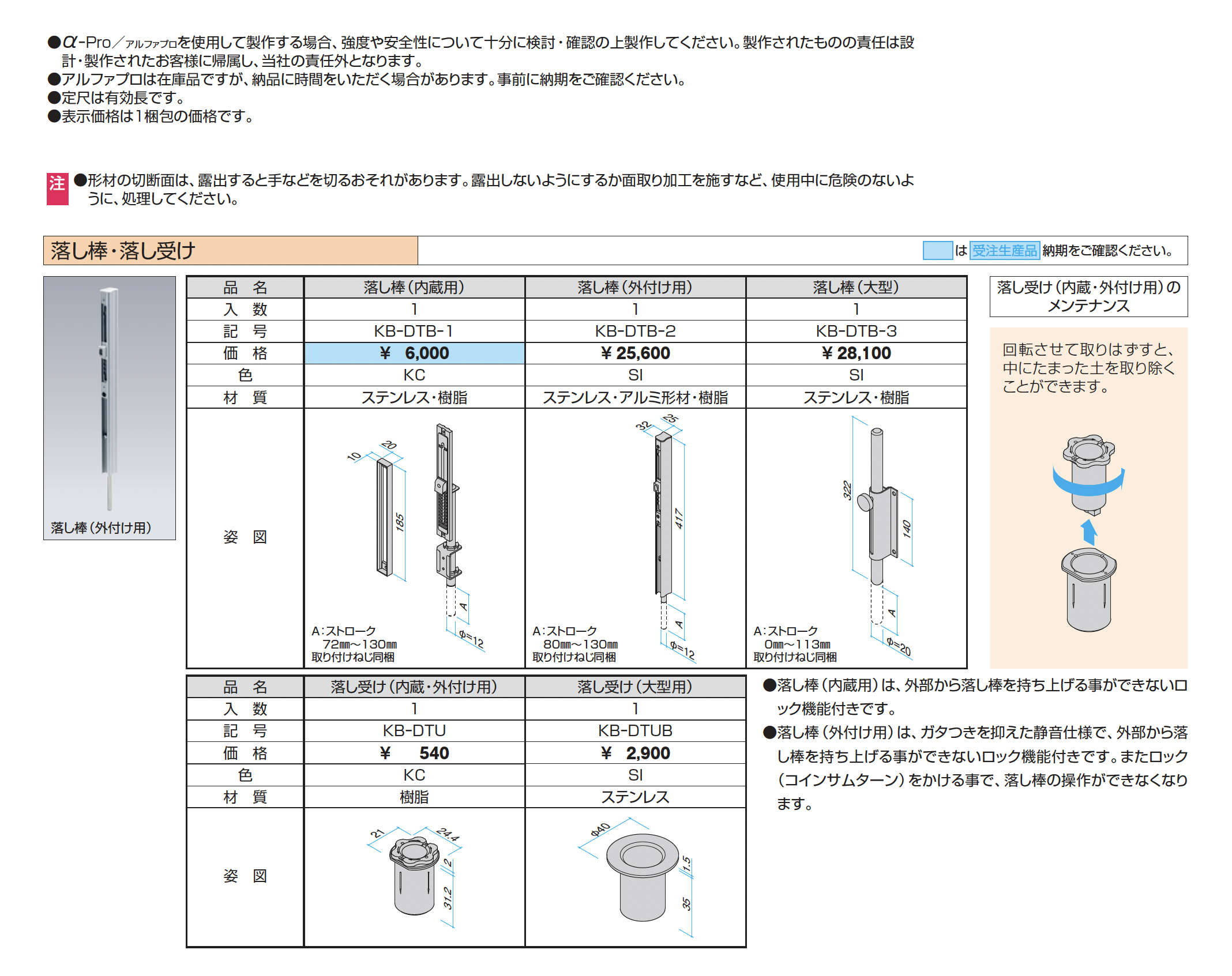 落し棒・落し受け【α-Pro アルファプロ】(ウォールエクステリア 総合カタログ 2025-2026)