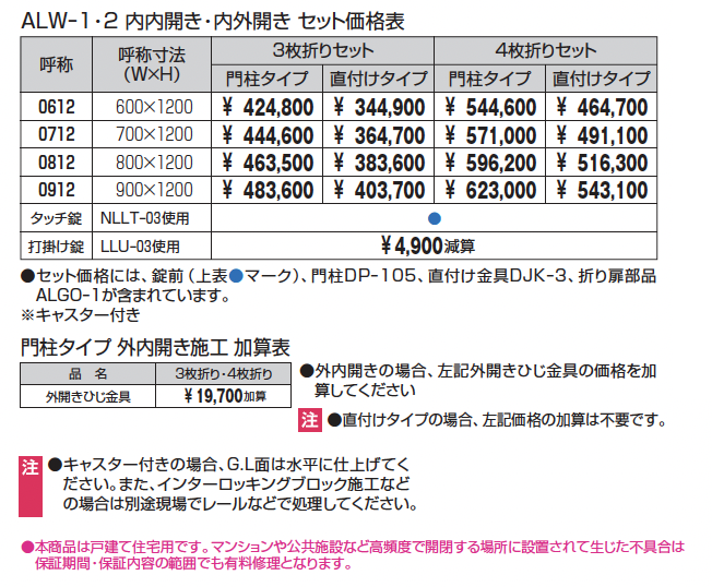 折り扉一覧 美流1・2型(エクステリア 総合カタログ 2025-2026(2025年10月価格改訂版))