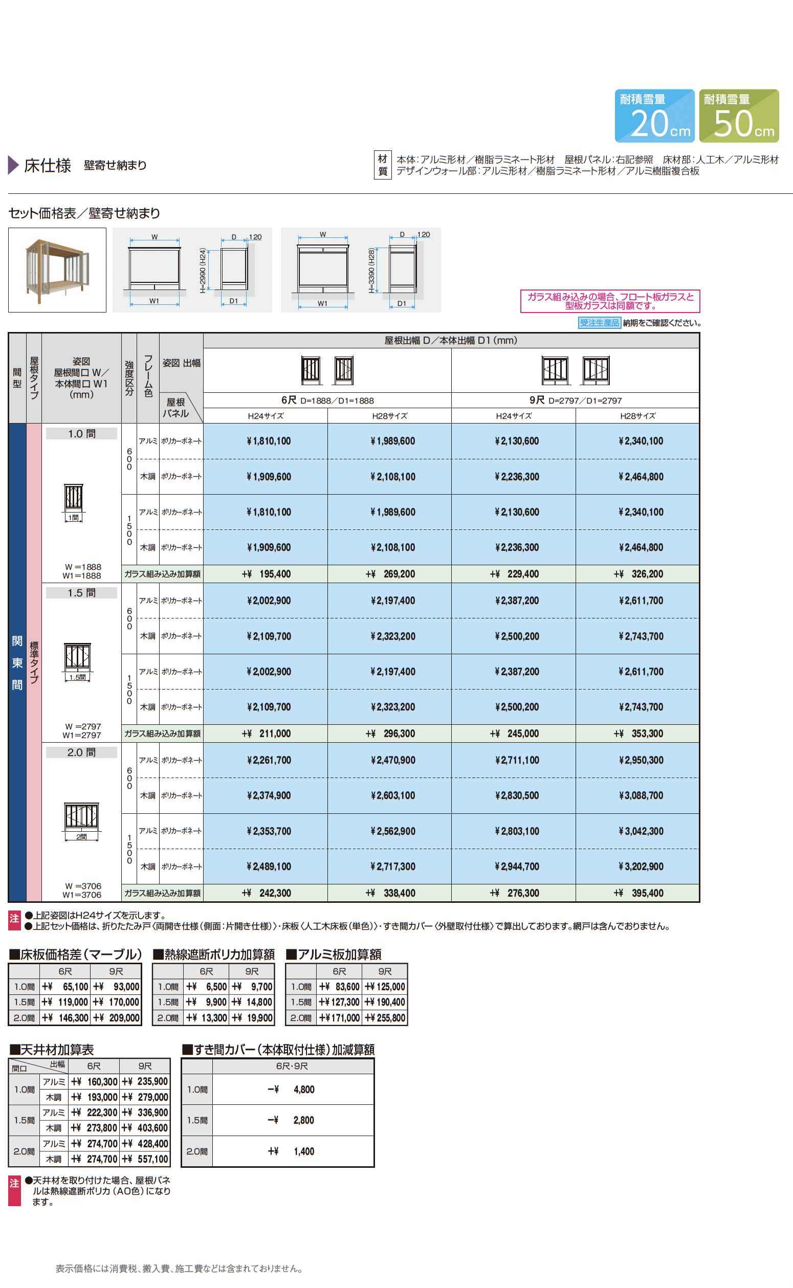 | 材質 | アルミ形材 樹脂ラミネート形材 ポリカーボネート 熱線遮断ポリカーボネート アルミ板 アルミ樹脂複合板 人工木 |