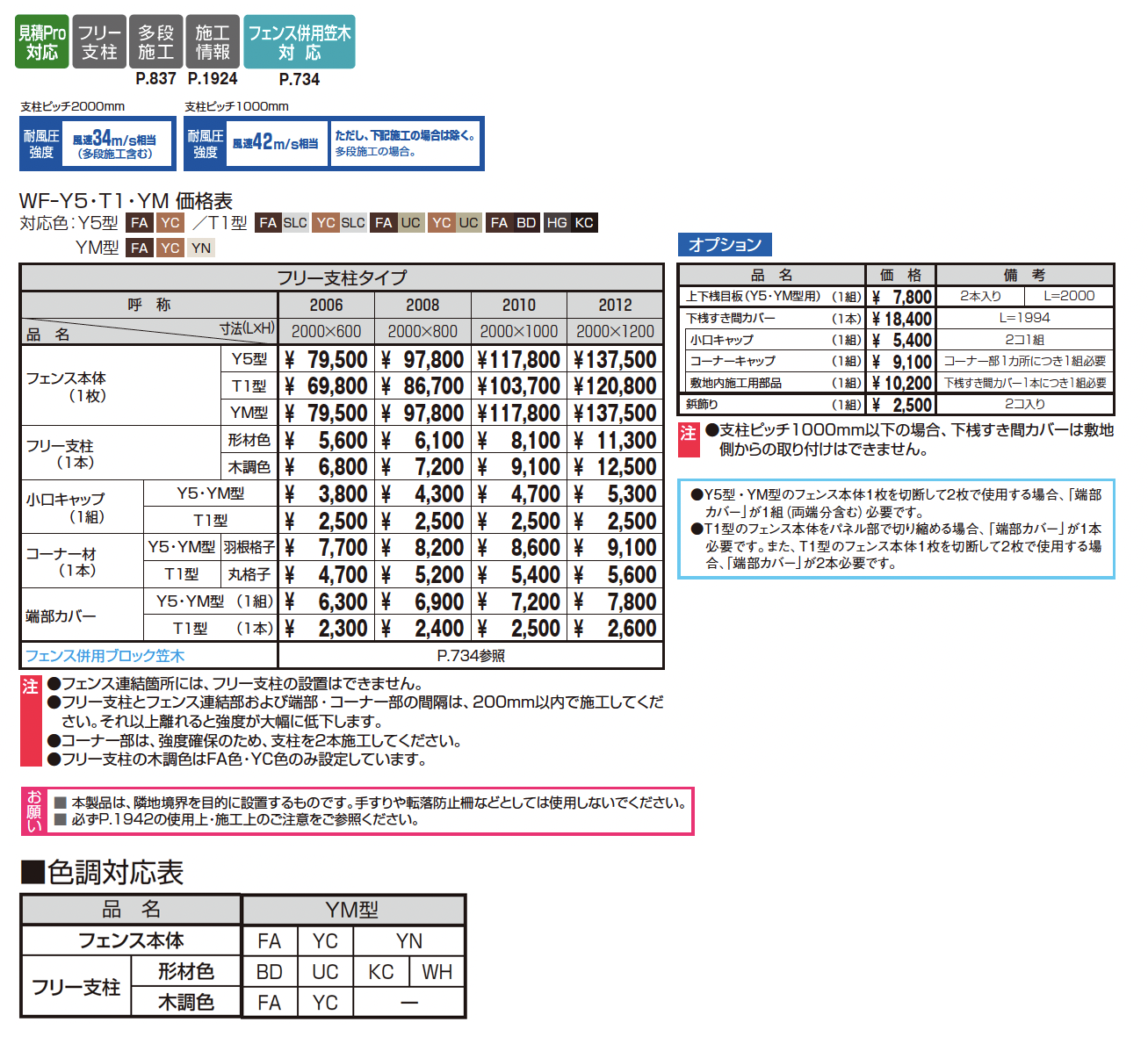 見積りシステム対応、フリー支柱、多設施工、フェンス併用笠木対応
