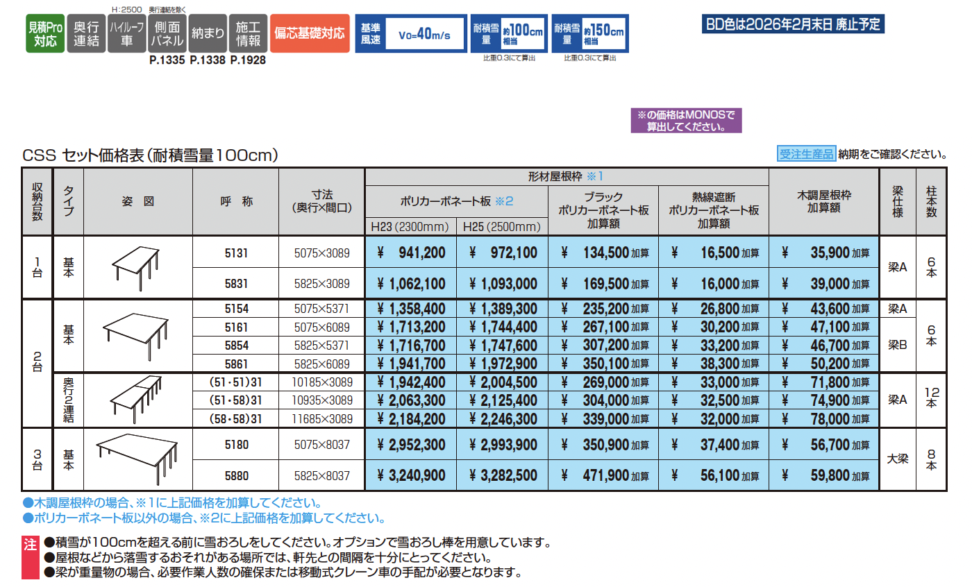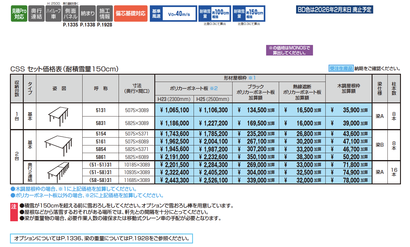 強度 | 基準風速Vo=40m/s 耐積雪量約100cm相当 耐積雪量約150cm相当 |
